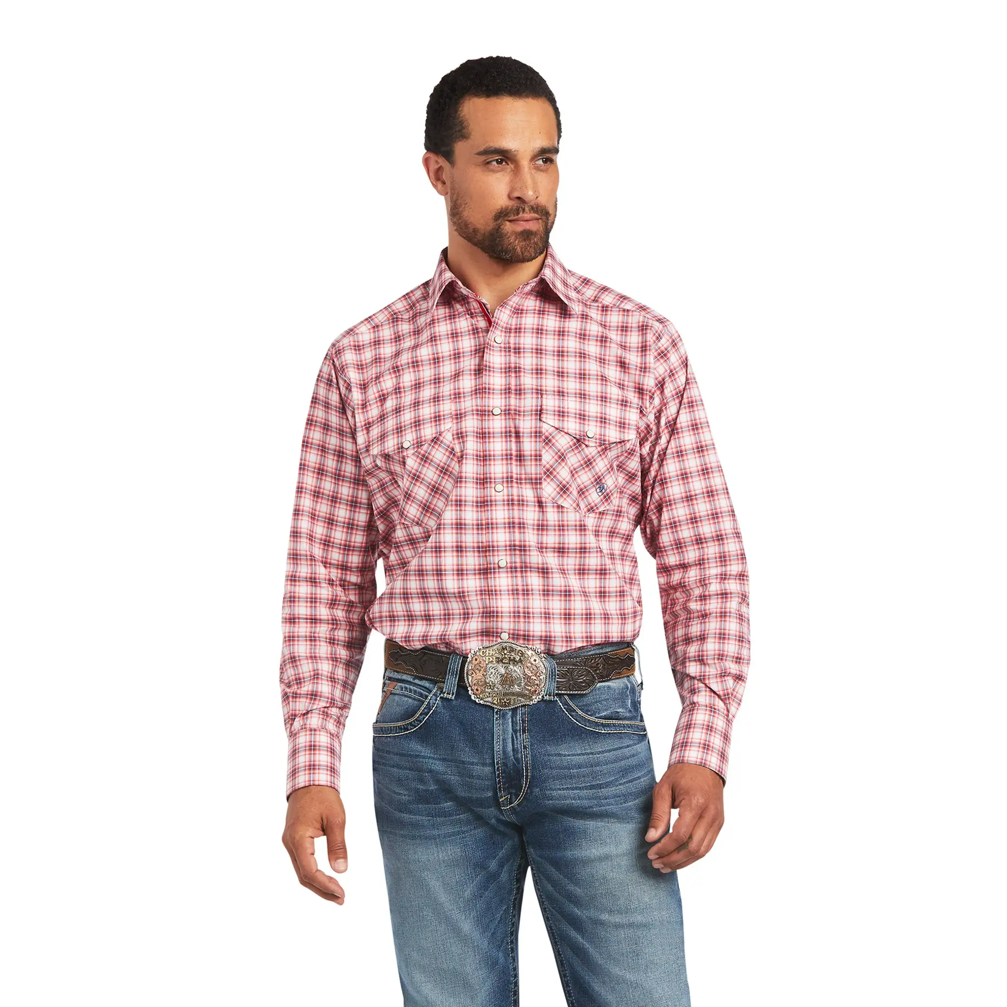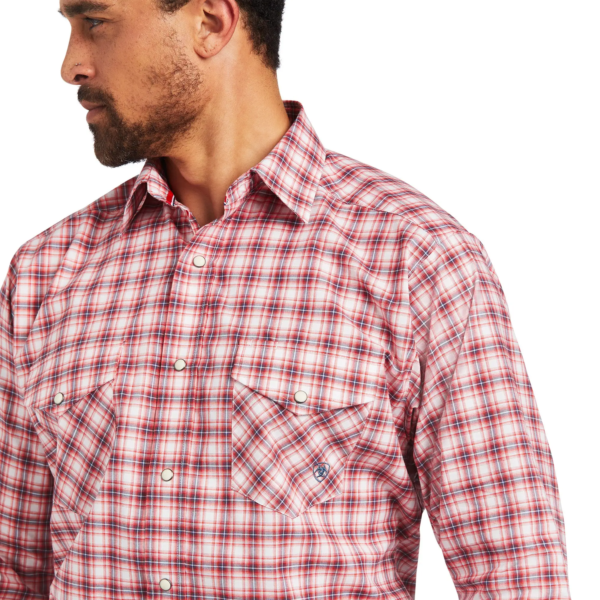 Heartfelt Red Plaid Long Sleeve Pro Series Forrest Stretch Classic Fit Snap Front Shirt.