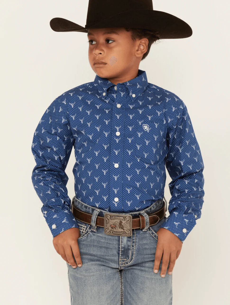 Ariat Boy’s Jai Blue With Steer Head Button Down Long Sleeve