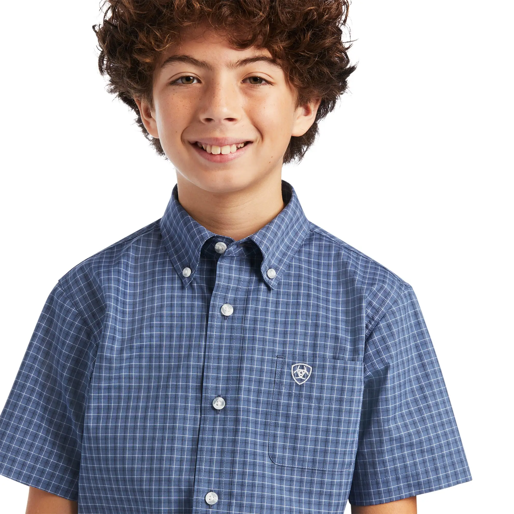 Carbon Blue Plaid Short Sleeve Bryson Classic Fit Button Down Shirt.