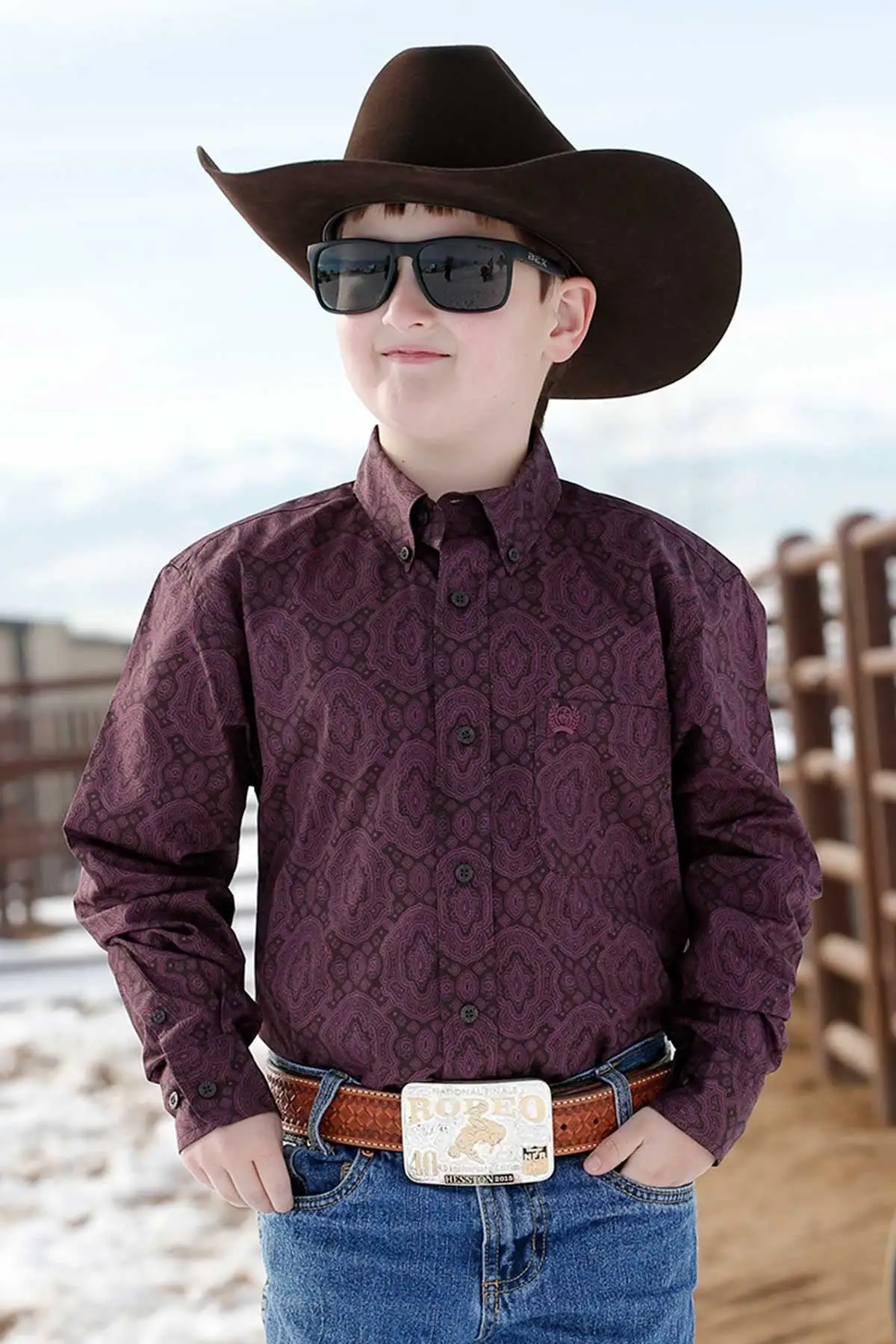 Purple Paisley Print Long Sleeve Button Down Shirt.