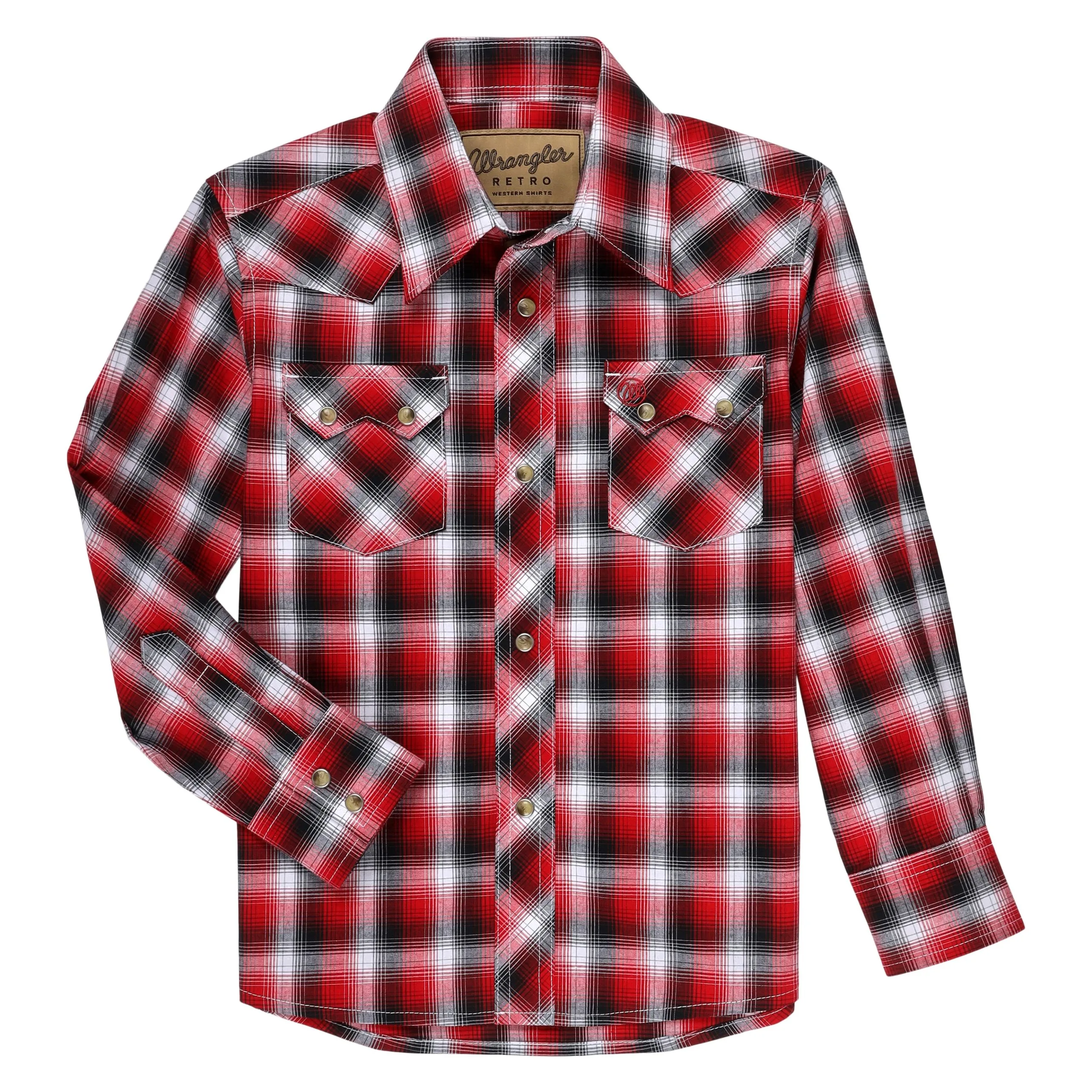 Wrangler Boy’s Red Plaid Snap Front Long Sleeve