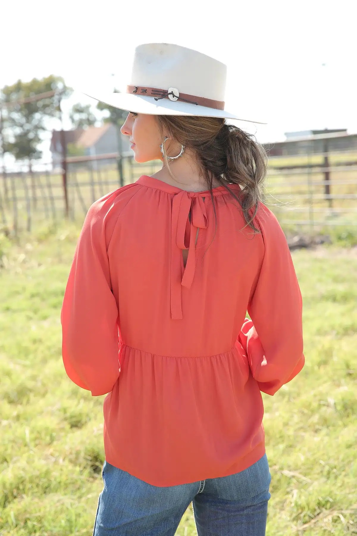 Red Georgette Blouse with Southwest-Themed Embroidery.