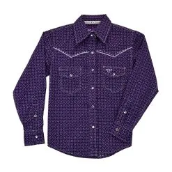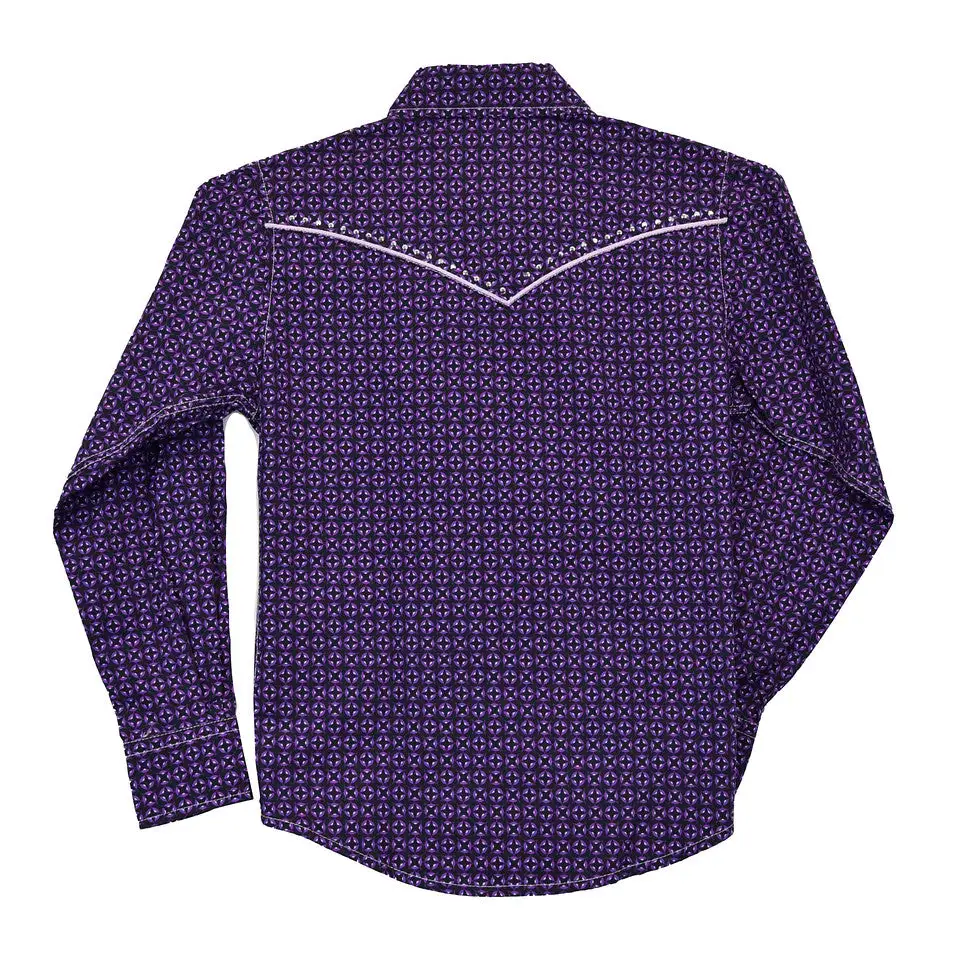 Purple Circle/Star Print Long Sleeve Snap Front Shirt.