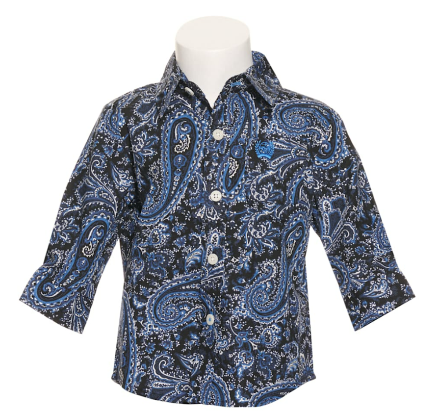 Cinch Infant Navy Paisley Button Down Long Sleeve
