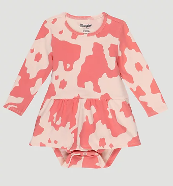 Pink Cow Print Long Sleeve Skirted Bodysuit.