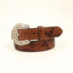 Brown Floral Pierced Western Belt with Sequined Underlay.