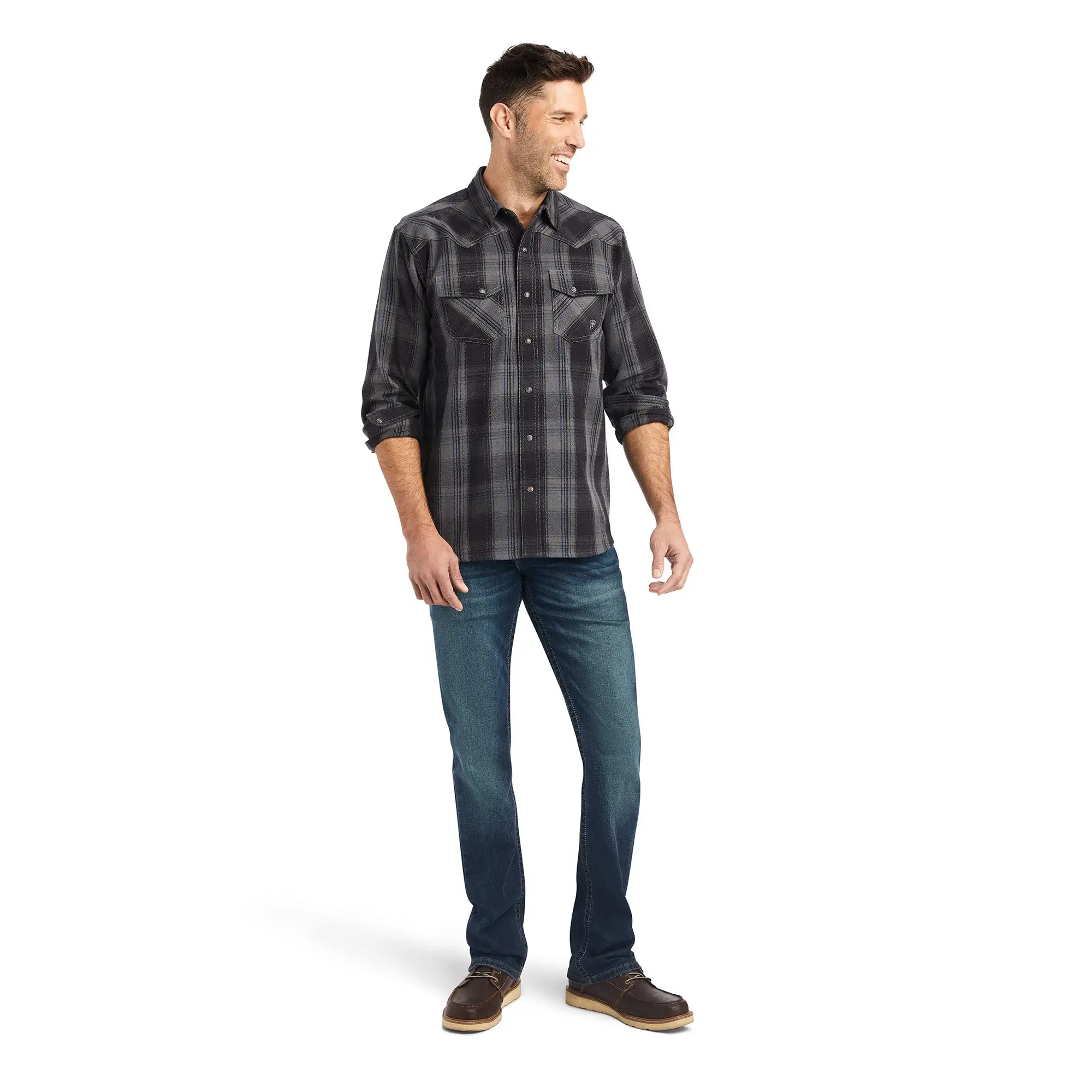 Black Plaid Long Sleeve Herrold Retro Fit Snap Front Shirt.