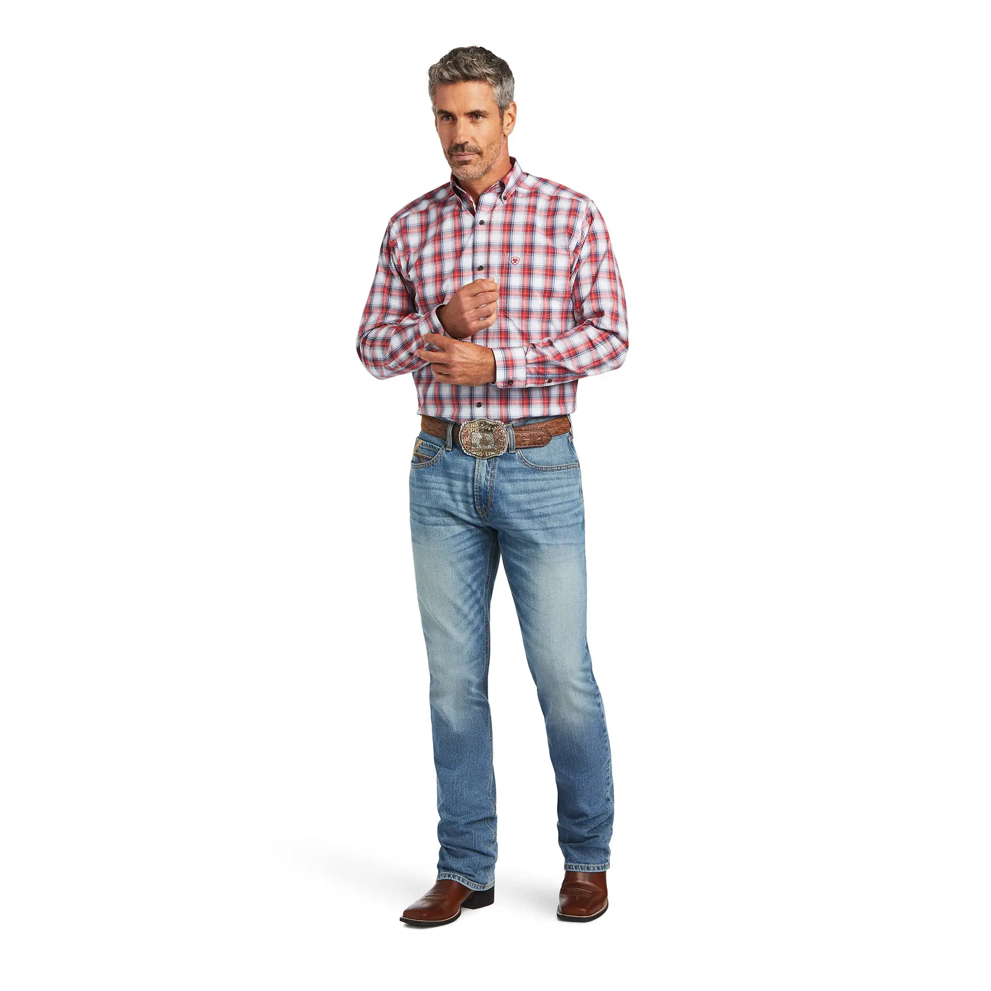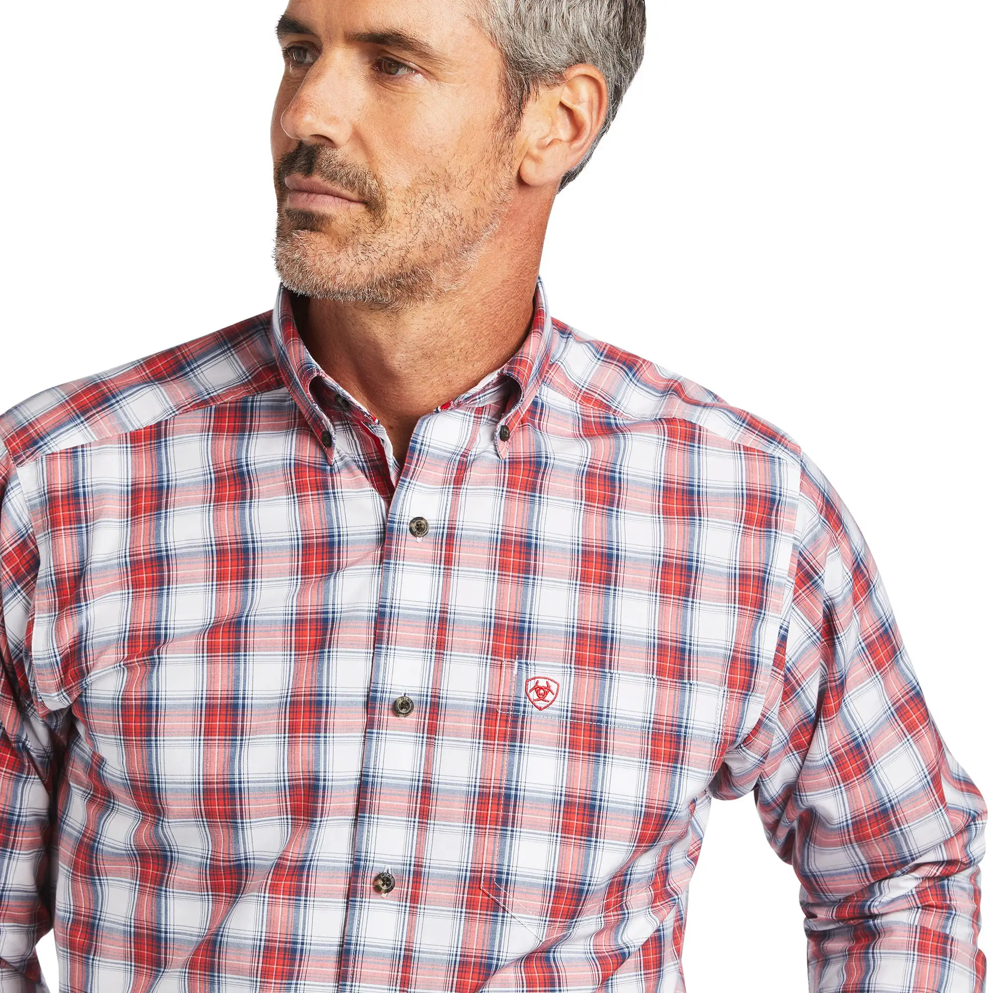 White and Red Plaid Long Sleeve Findley Fitted Button Down Shirt.