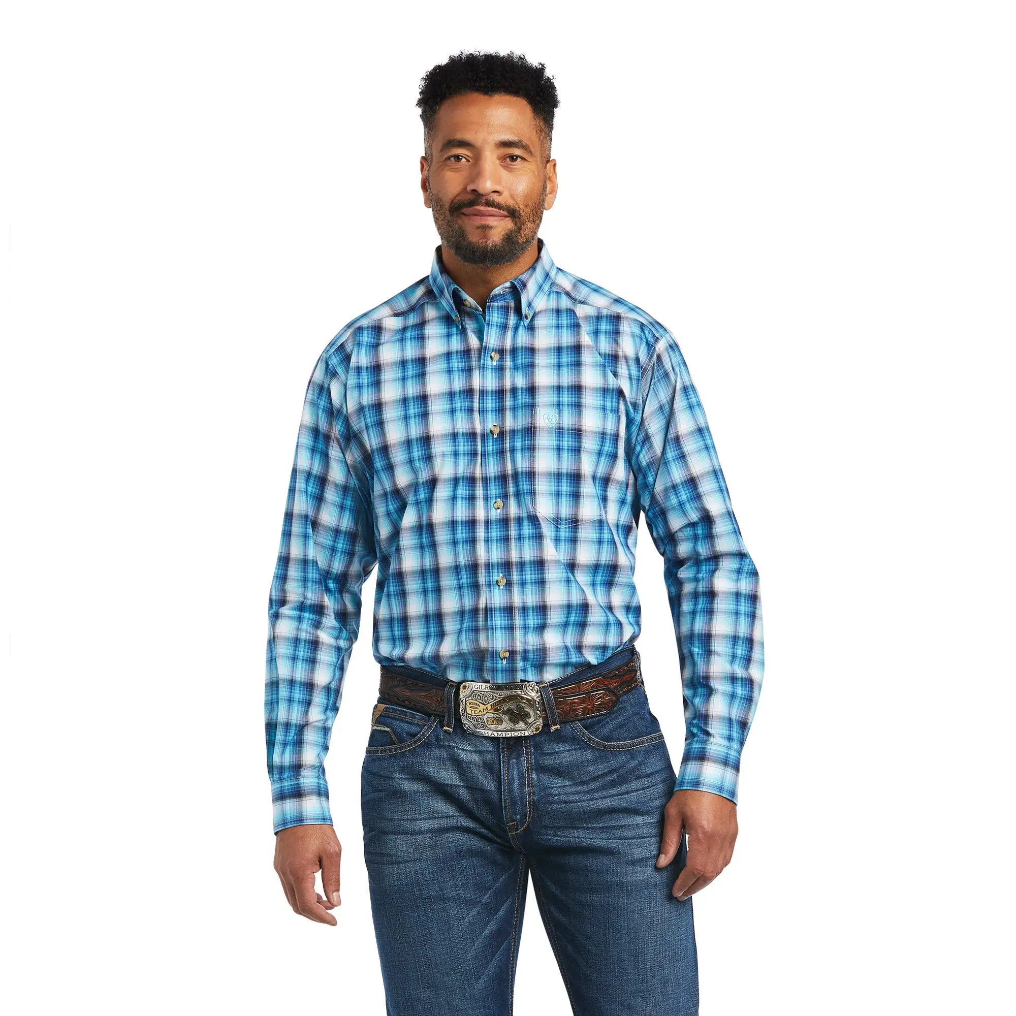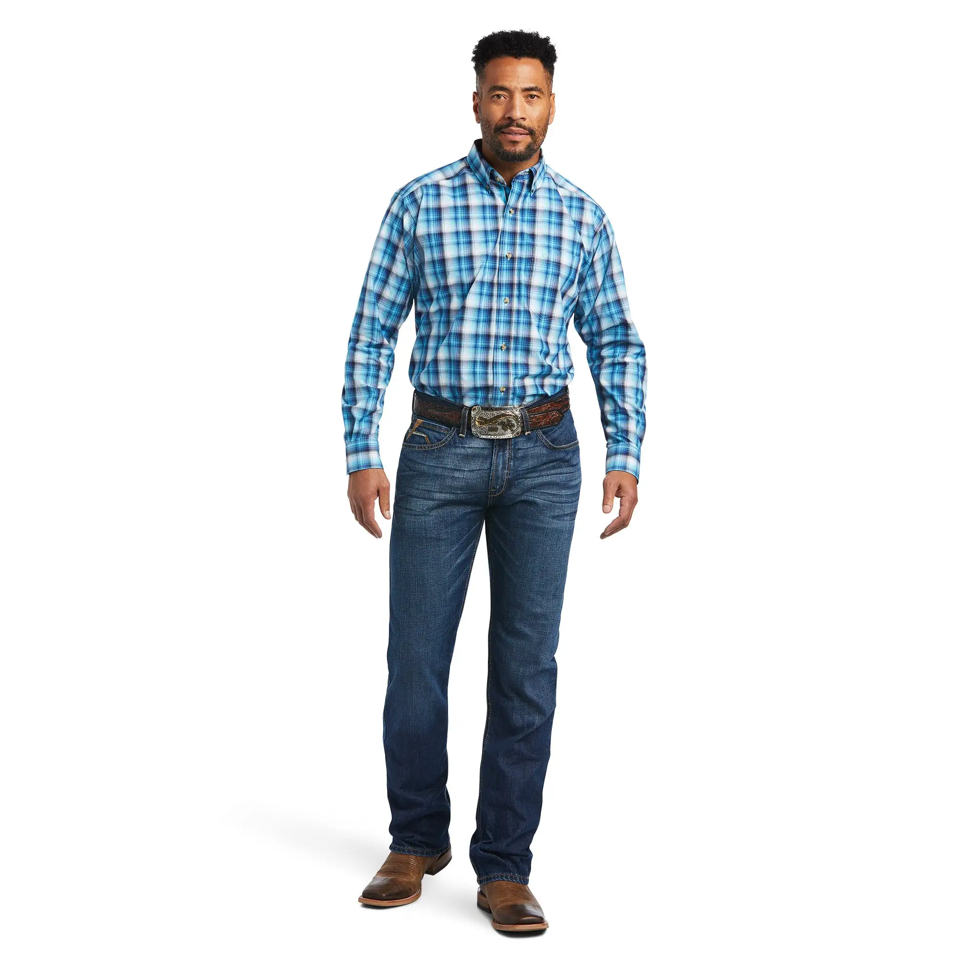 Bachelor Button Blue Plaid Long Sleeve Pro Series Mateo Classic Fit Button Down Shirt.