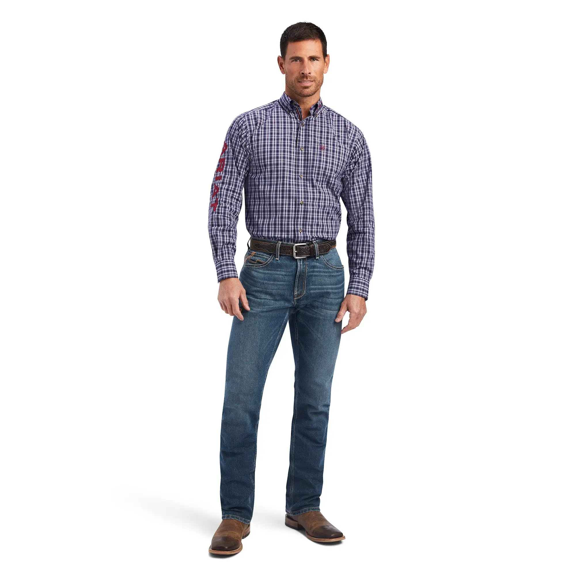 Maritime Blue Plaid Long Sleeve Pro Series Noell Fitted Button Down Shirt.