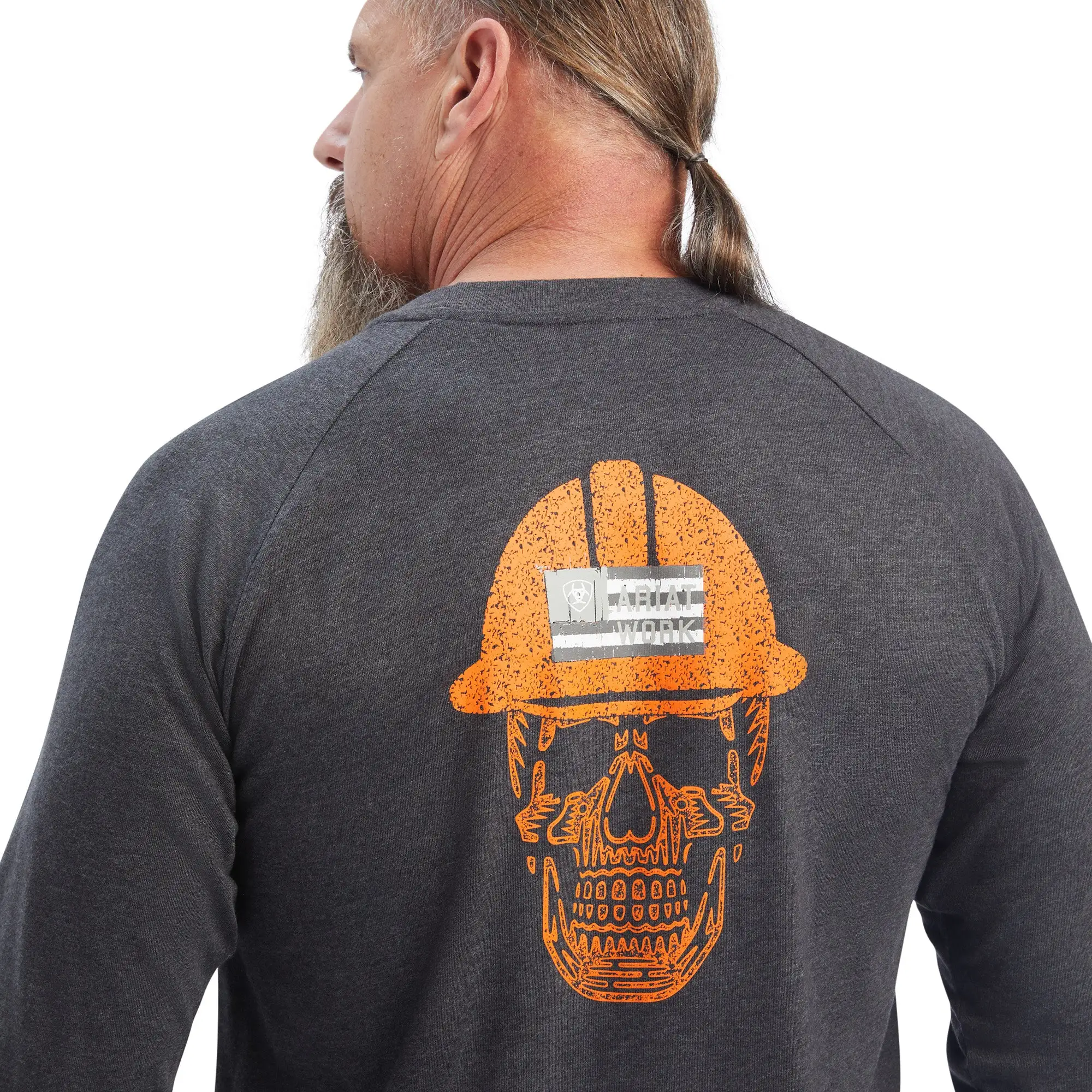 Charcoal Heather and Safety Orange Long Sleeve Cotton Strong Roughneck Graphic T-Shirt.