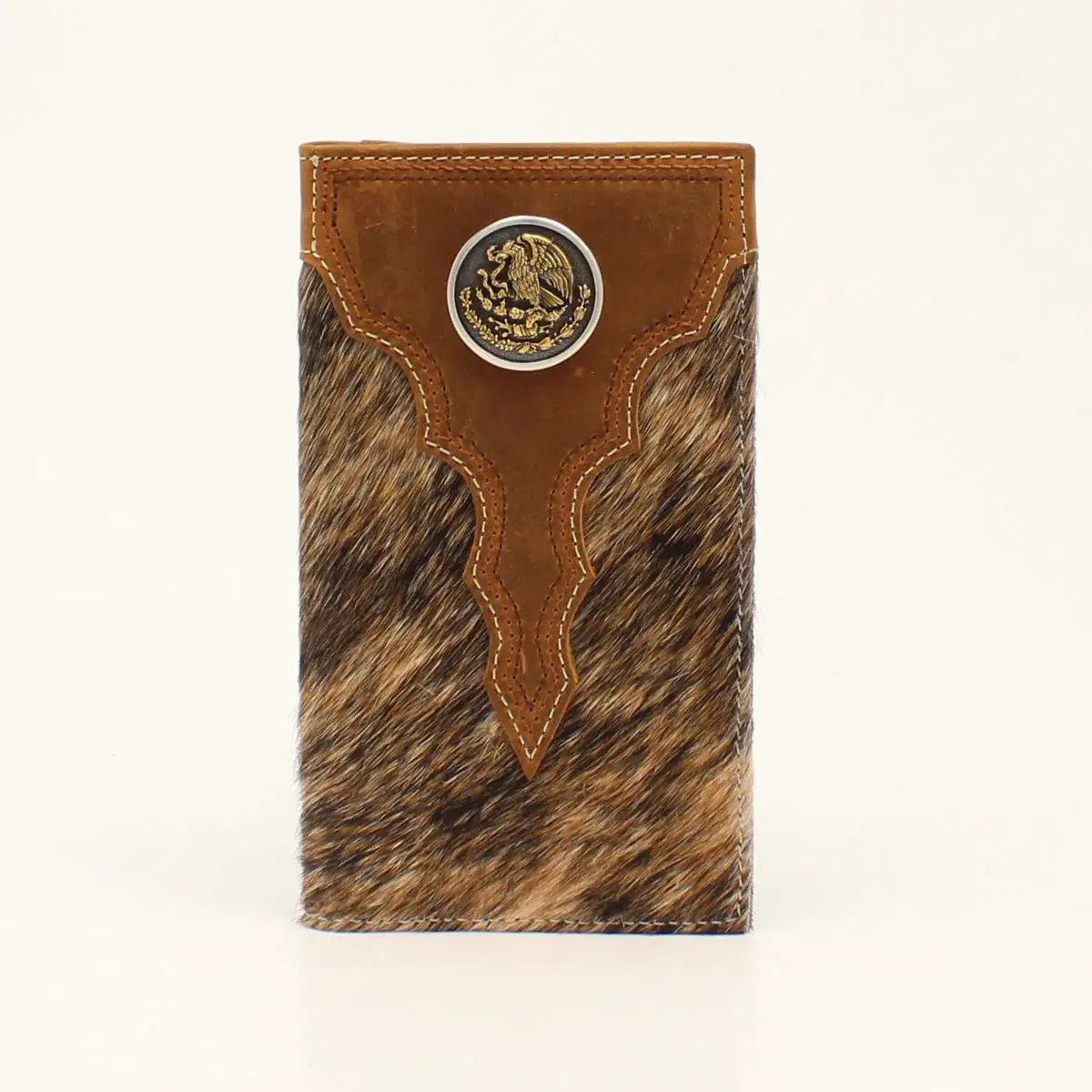 Calf Hair with Brown Leather Overlay and Mexican Eagle Concho Rodeo Wallet.