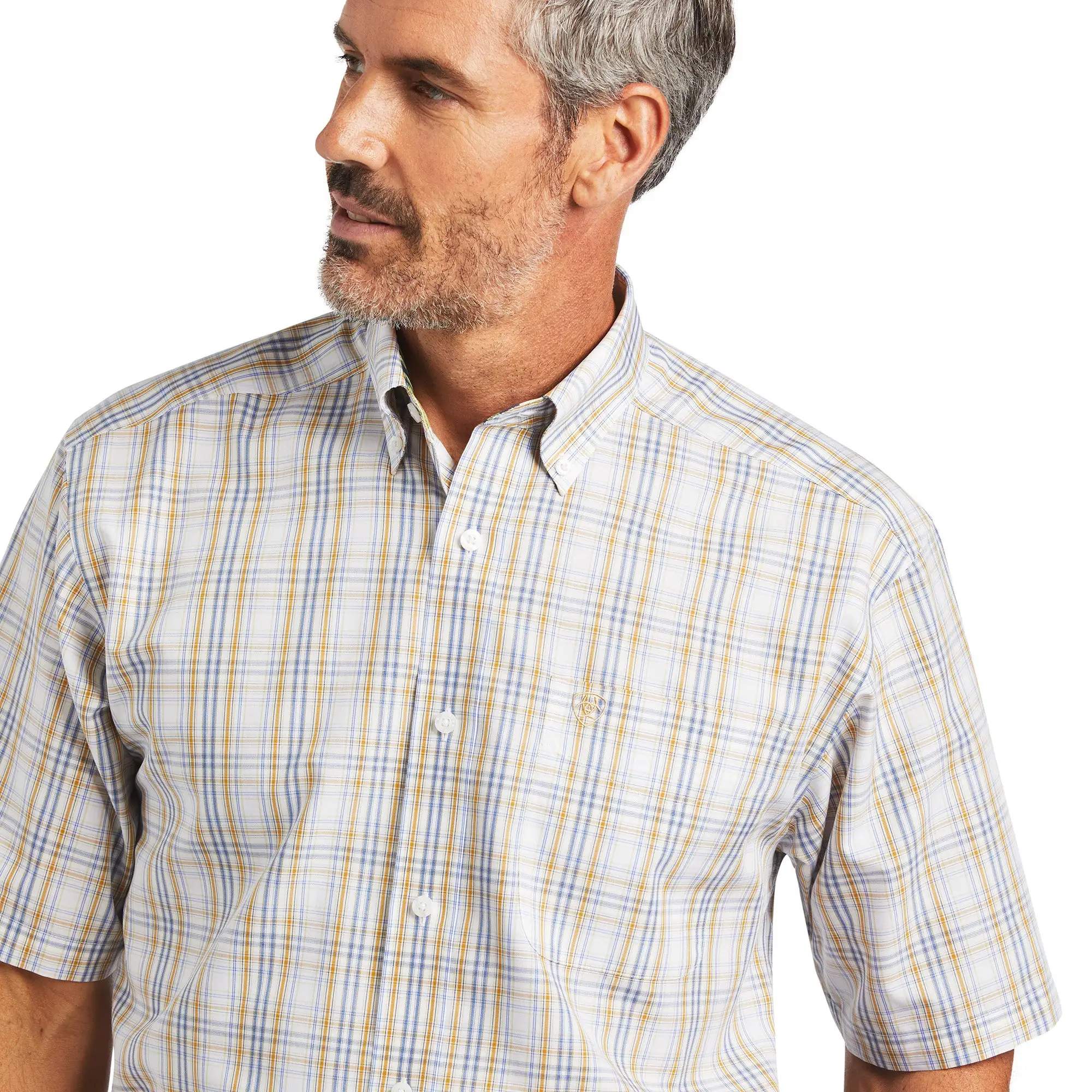 White Plaid Short Sleeve Wrinkle Free Evander Classic Fit Button Down Shirt.