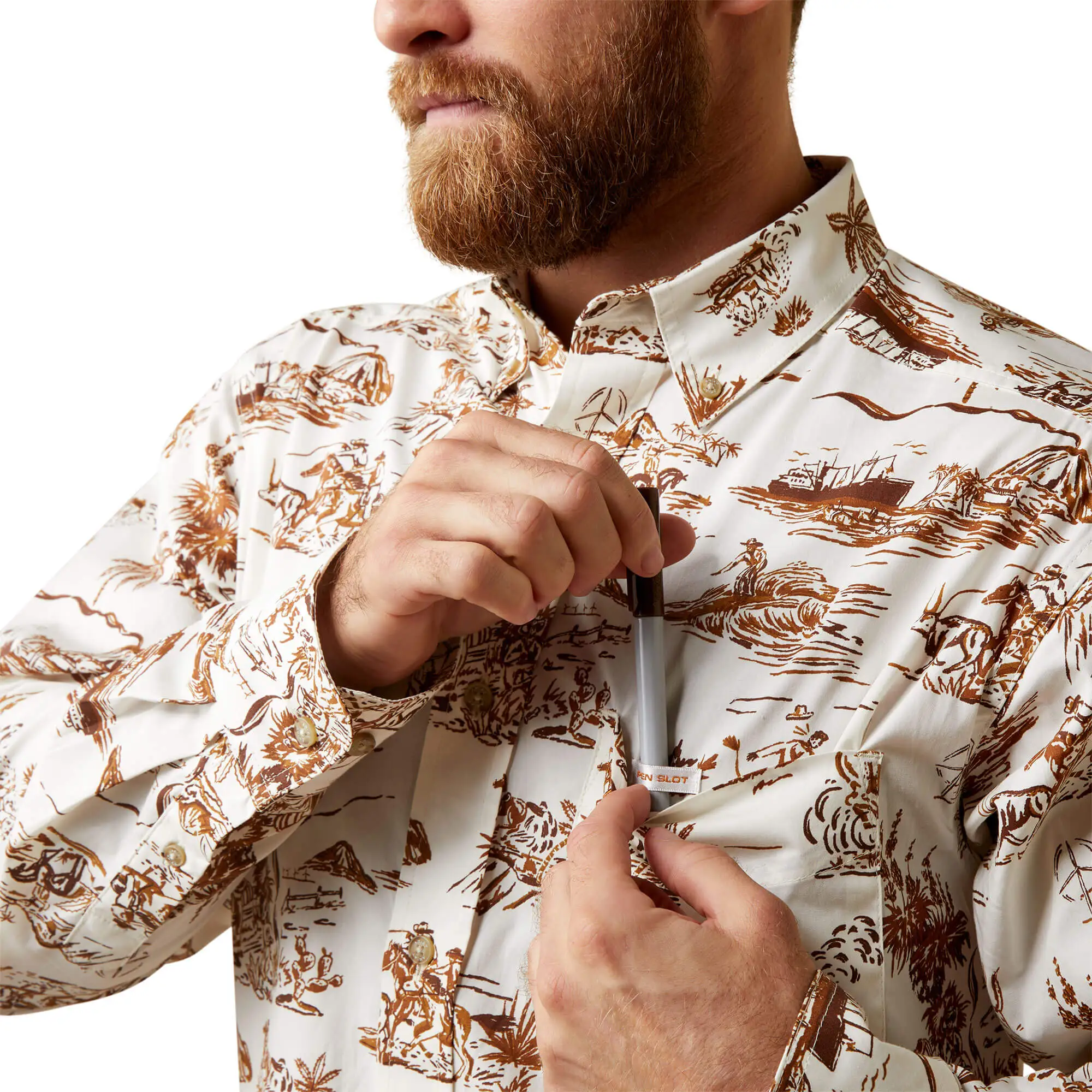 Sand Long Sleeve Wrinkle Resist Paniolo Western Aloha Stretch Button Down Shirt.