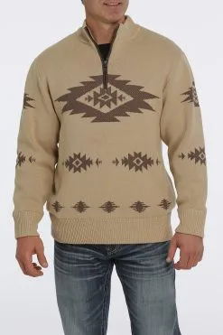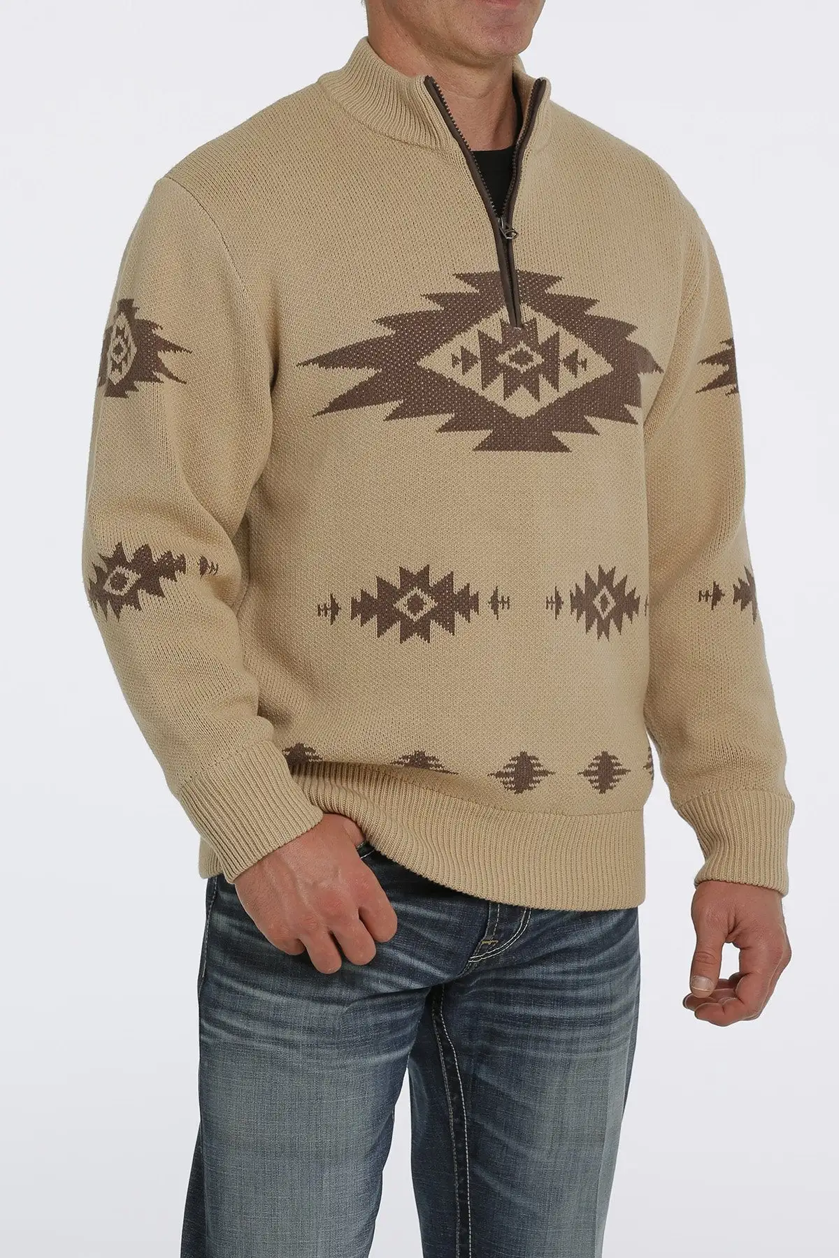 Khaki Southwest 1/4 Zip Aztec Print Pullover Sweater.