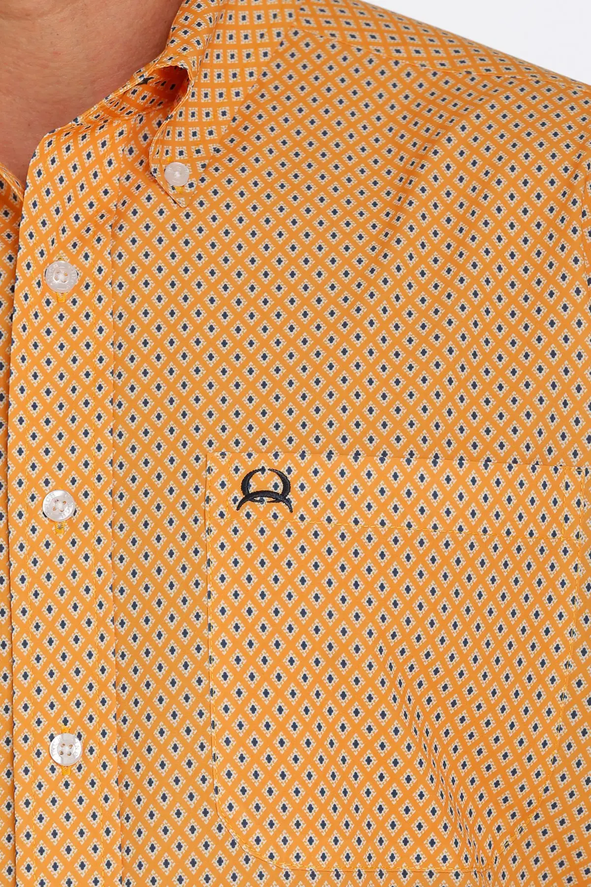 Orange and Navy Geometric Print Short Sleeve Arenaflex Button Down Shirt.