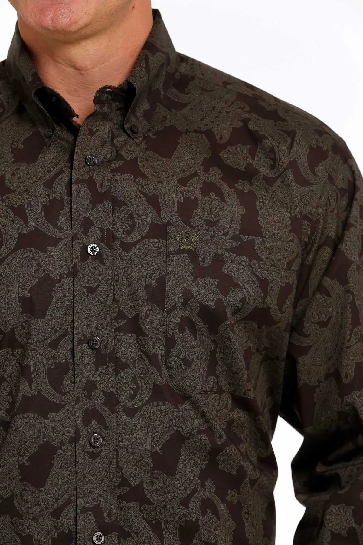 Cinch Men’s Brown Paisley Button Down Long SleeveÂ