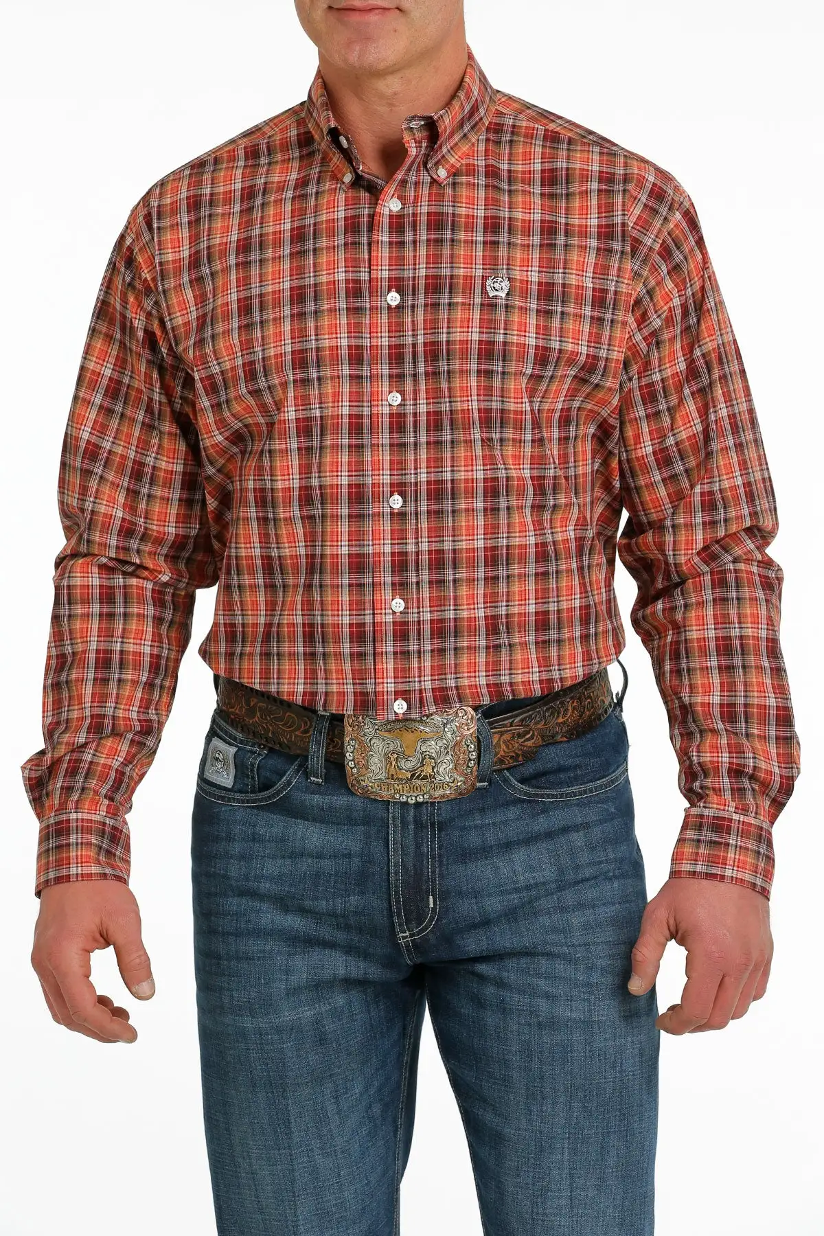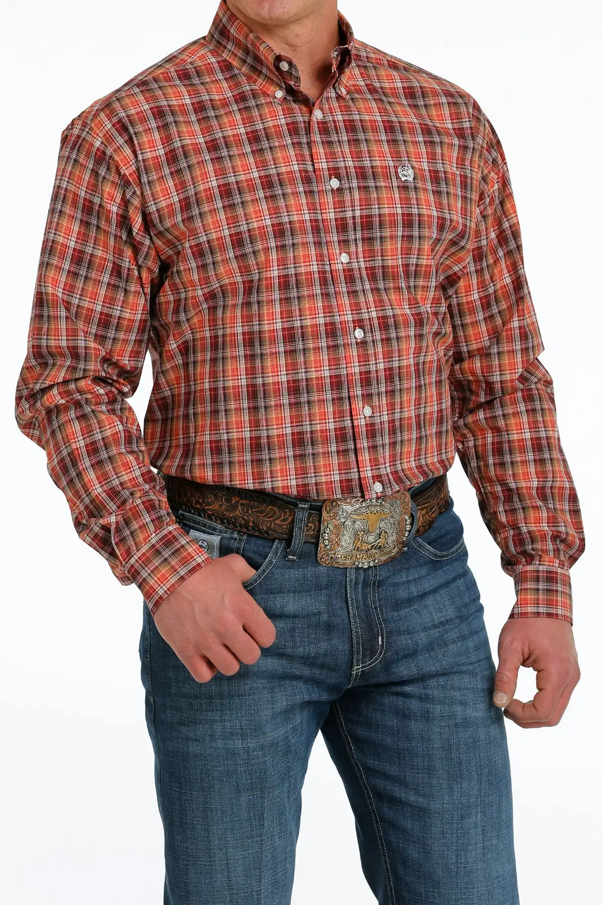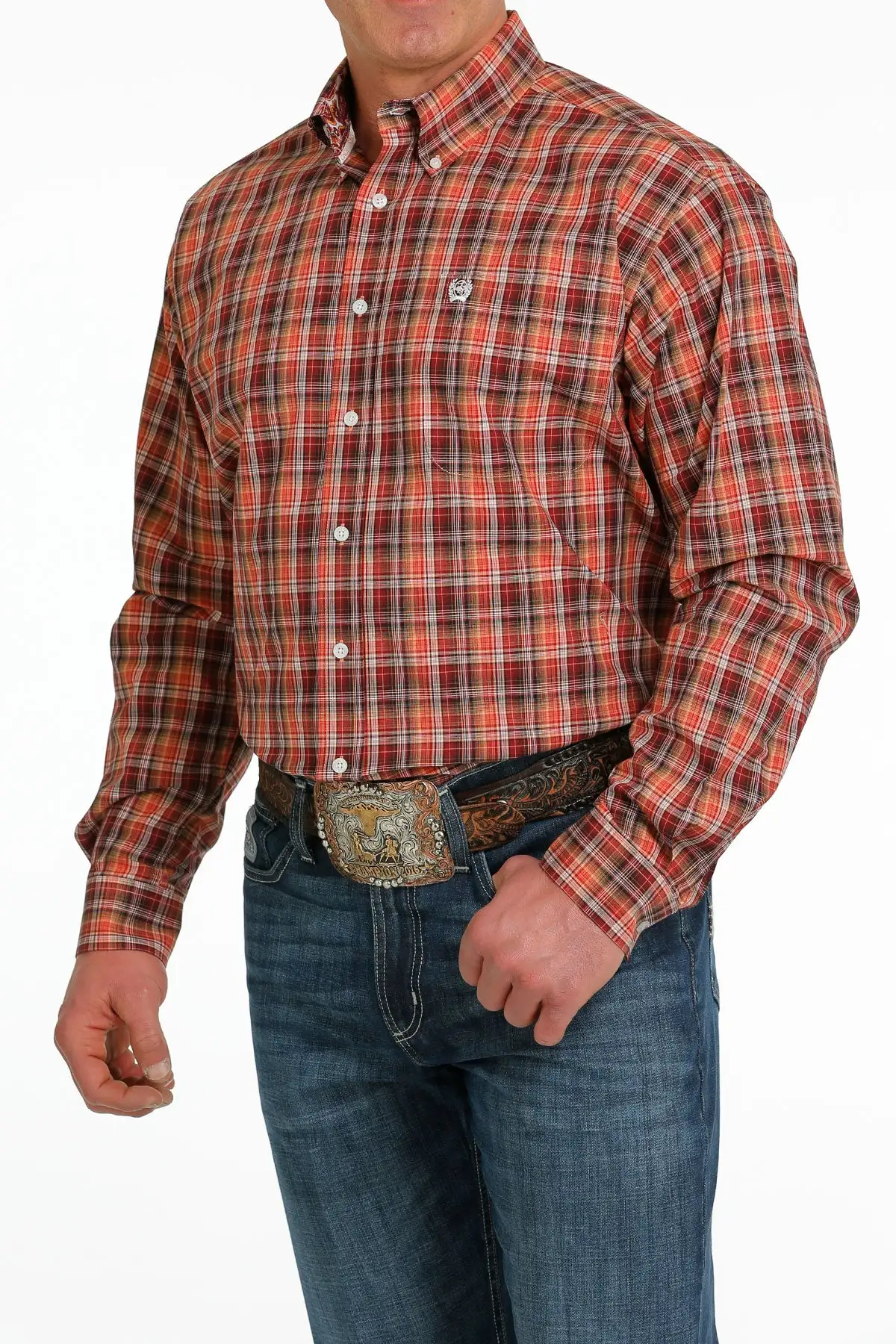 Red and Orange Plaid Long Sleeve Button Down Shirt.