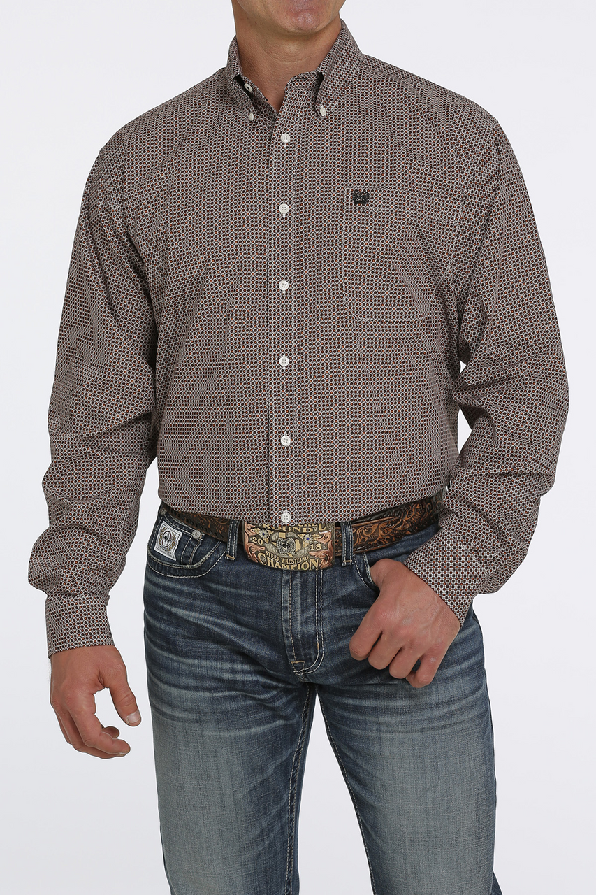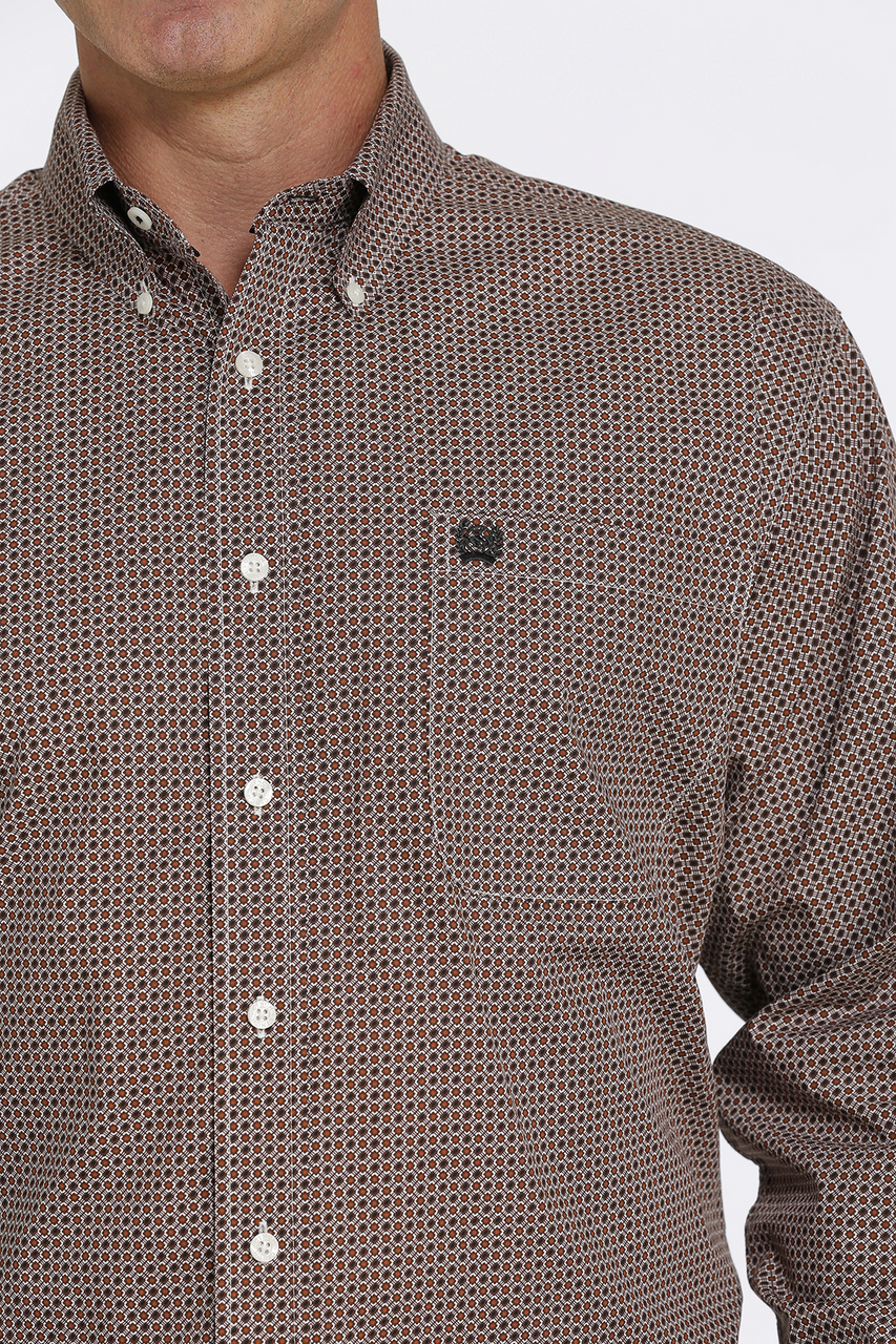 Cinch Men’s Cream Pattern Button Down Long Sleeve