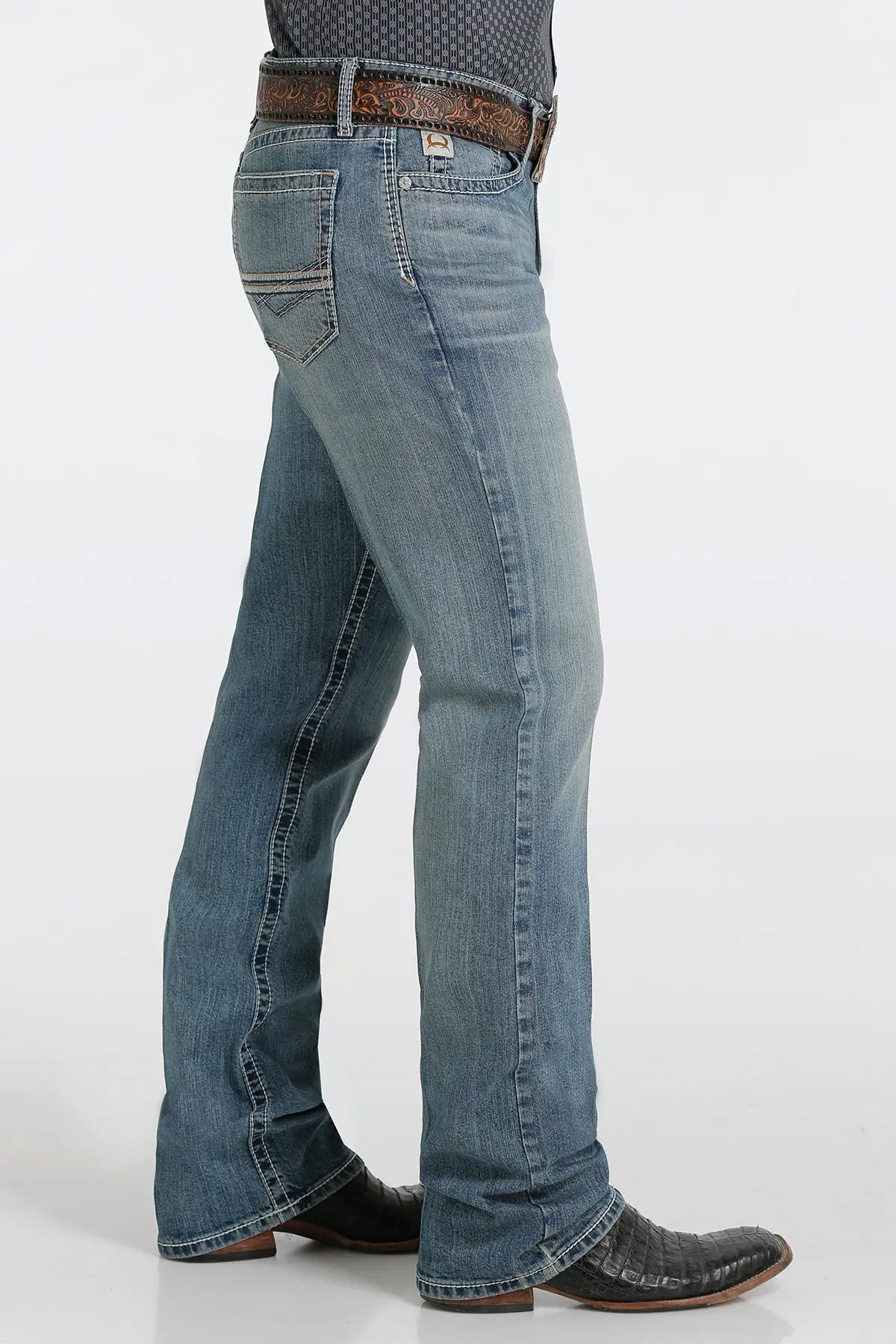 Medium Stonewash Performance Denim Mid-Rise Slim Bootcut Jean.