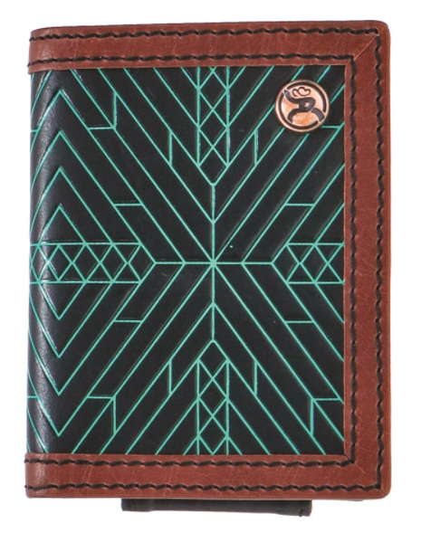Black and Brown with Turquoiuse Aztec Pattern Roughy Neon Moon Bi-Fold Money Clip.