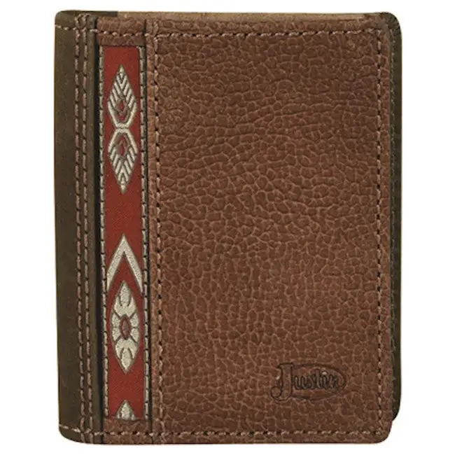 Dark Tan Buffalo Bi-Fold Wallet with Muddy River Dark Brown Trim and Ribbon Underlay.