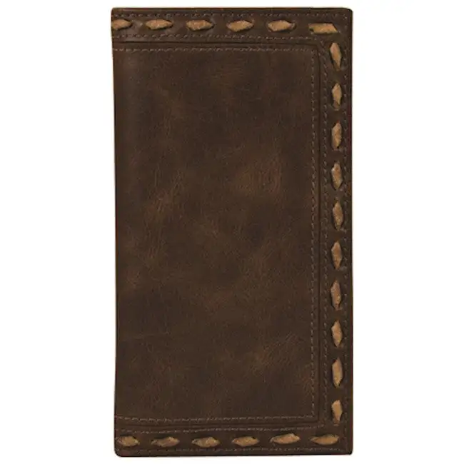 Stage Coach Dark Brown Rodeo Wallet with Natural Bone Rawhide Whip Stitch.