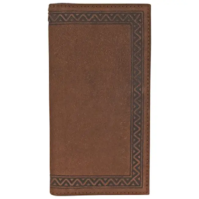 Brown Roughout Leather Rodeo Wallet with Tooled Trim.