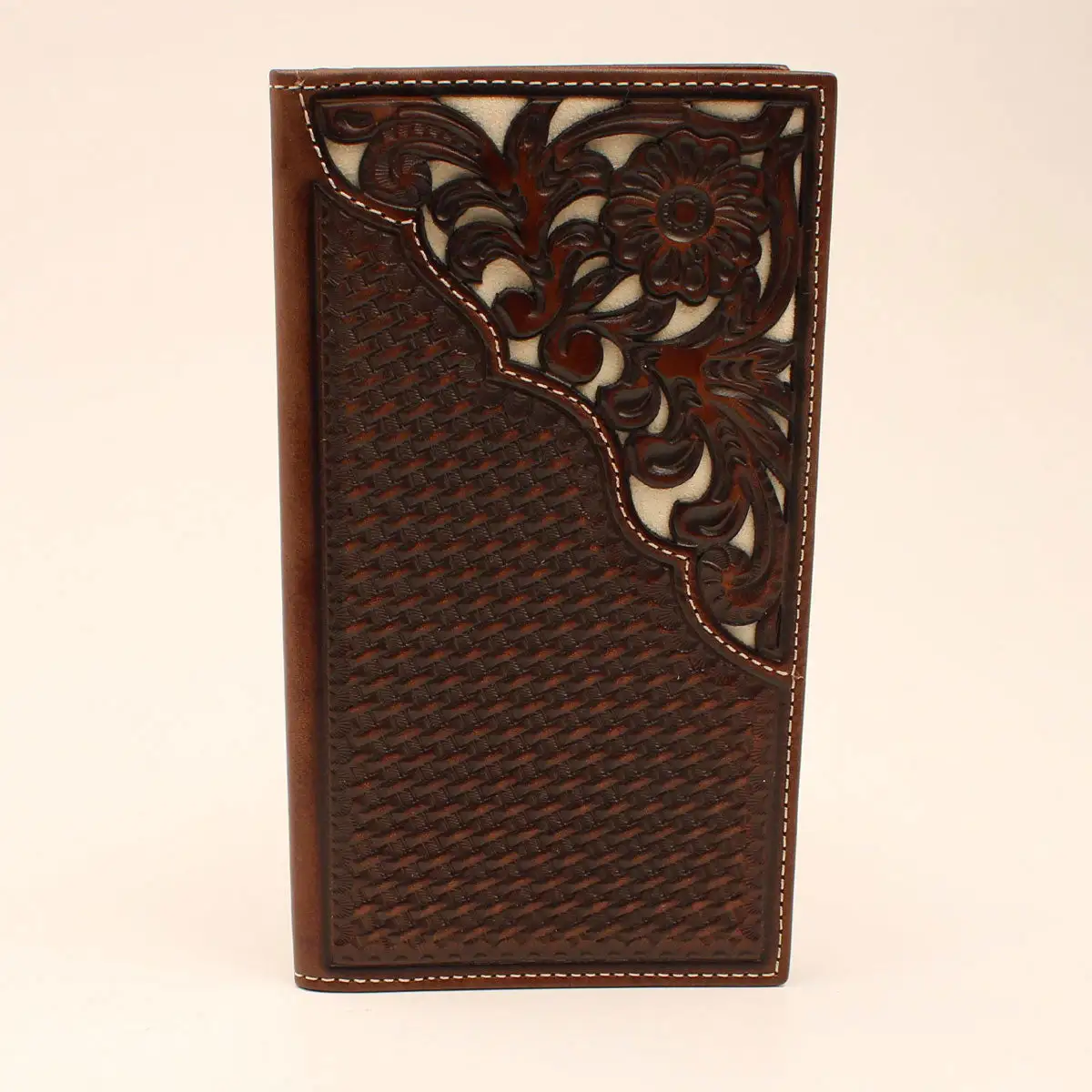 Brown Basketweave and Corner Floral with Ivory Underlay Rodeo Wallet.