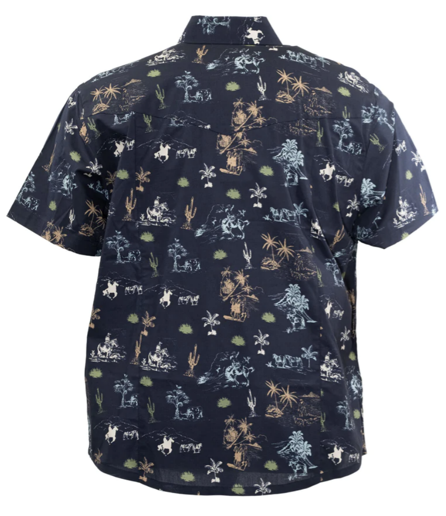 Blue with All Over Hawaiian Cowboy Print Short Sleeve Jaxon Button Down Shirt.