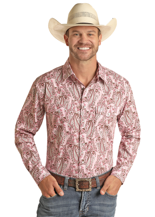 Pink Paisley Long Sleeve Snap Front Shirt.