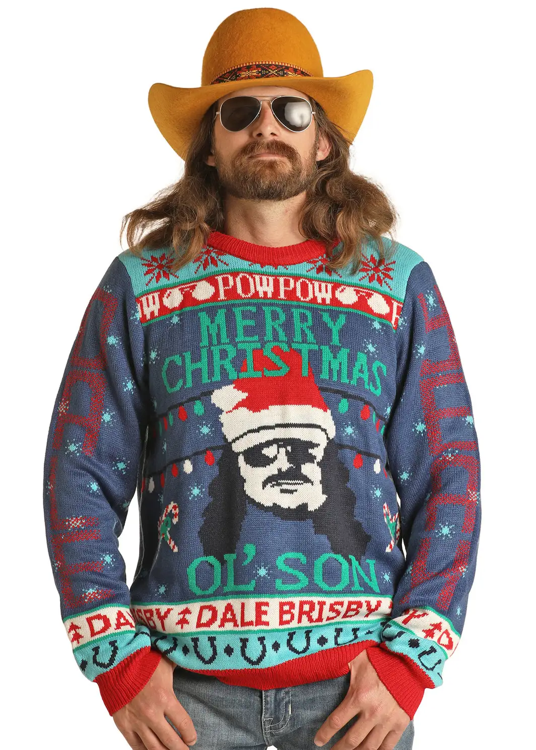 Blue and Read Dale Brisby Merry Christmas Ol’ Son Christmas Sweater.