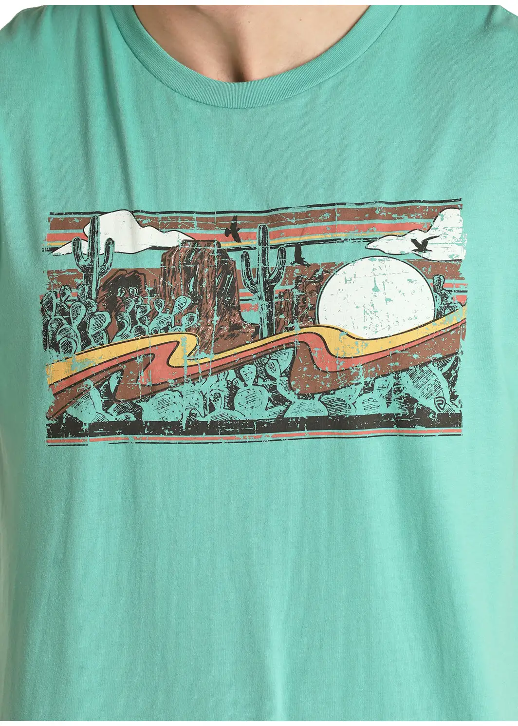 Turquoise Short Sleeve Desert Screen Print T-Shirt.