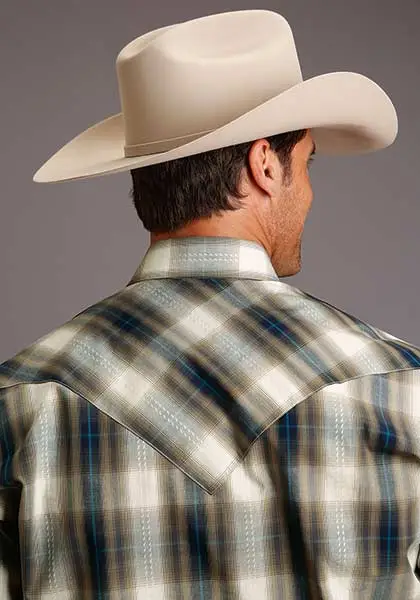 Brown Plaid Long Sleeve Snap Front Shirt.