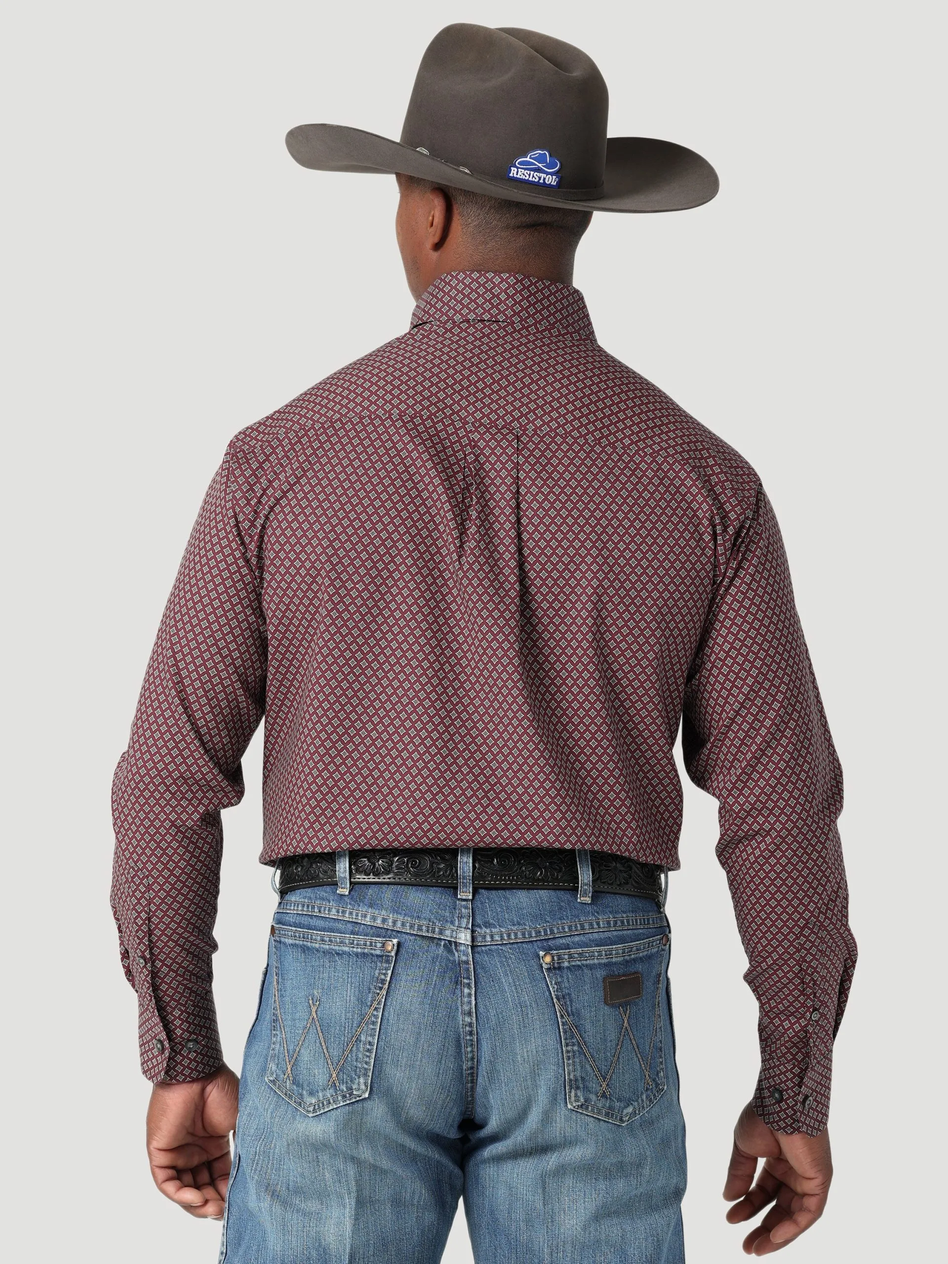 Burgundy and Grey Star Pattern Long Sleeve Button Down Shirt.