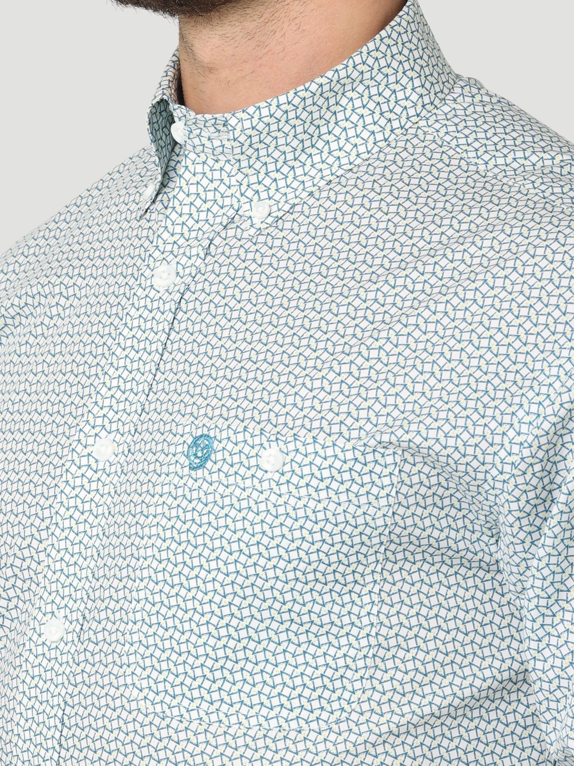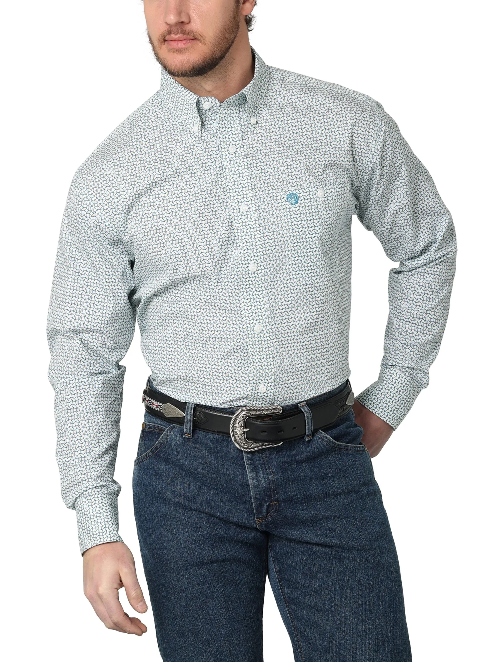 Aqua Abstract Print Long Sleeve George Strait Button Down Shirt.