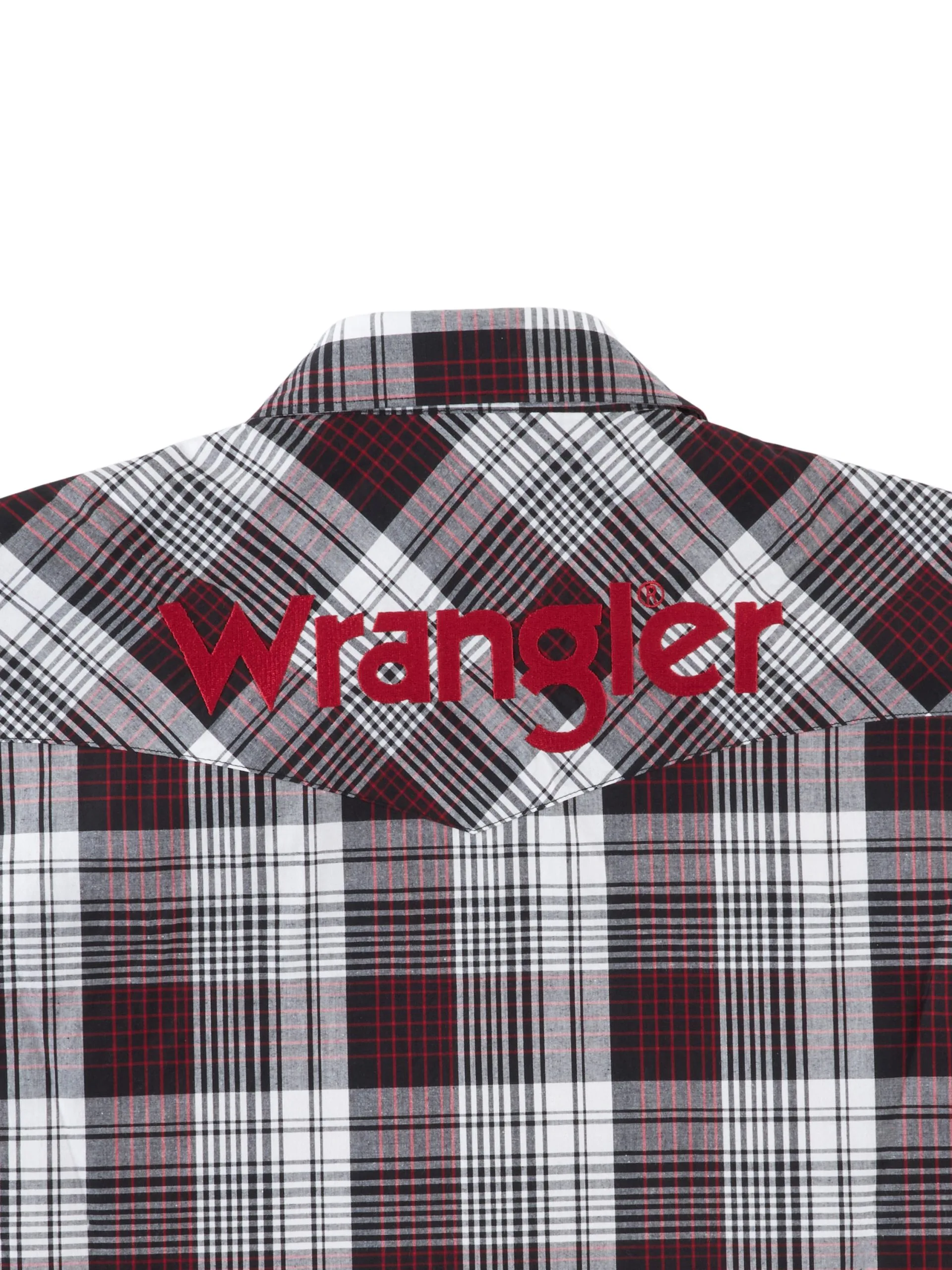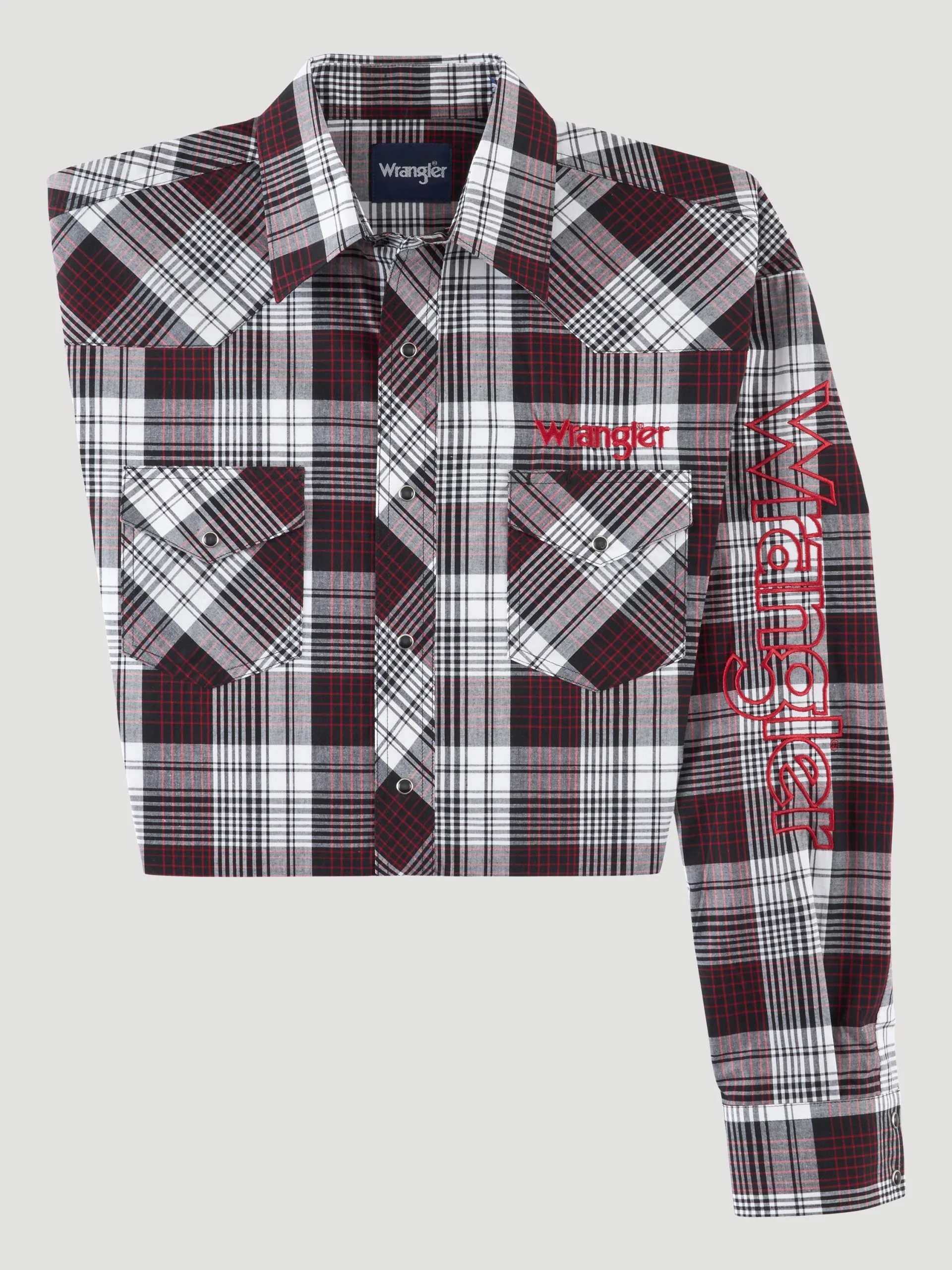 Burgundy Plaid Long Sleeve Logo Snap Front Shirt.