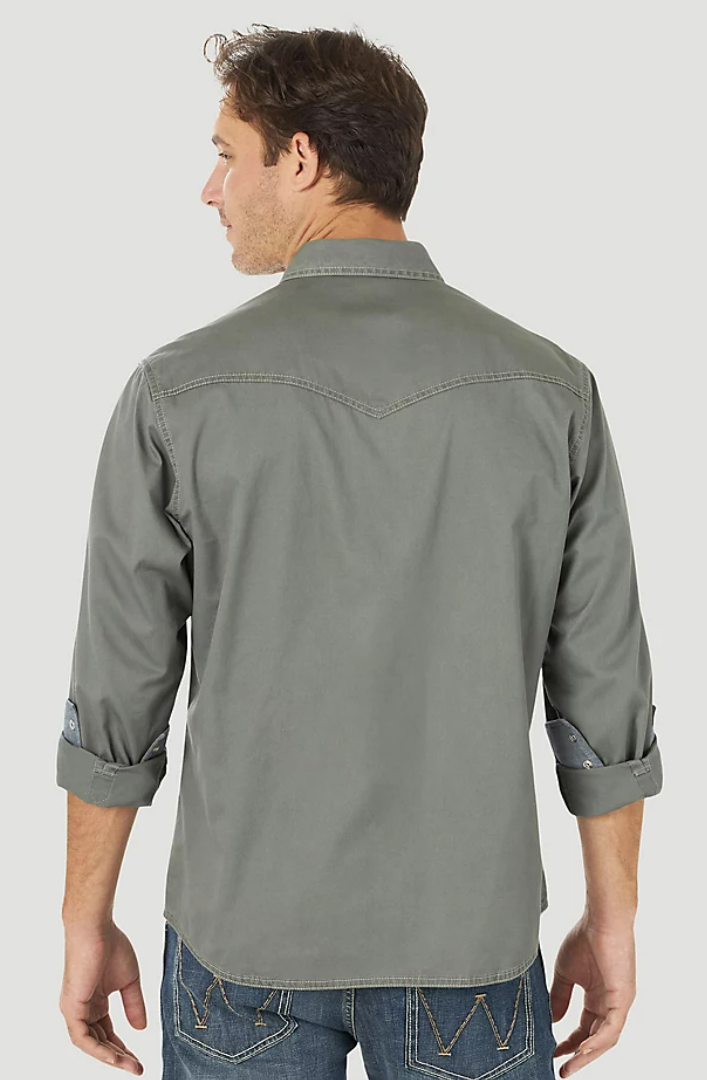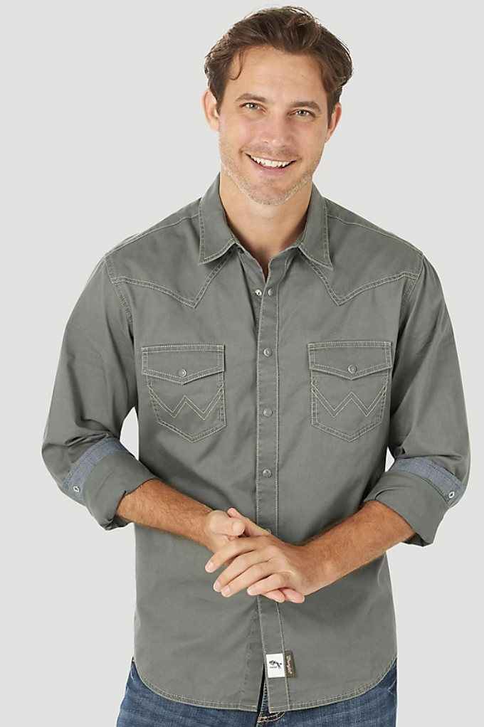 Gunmetal Grey Long Sleeve Snap Front Shirt.