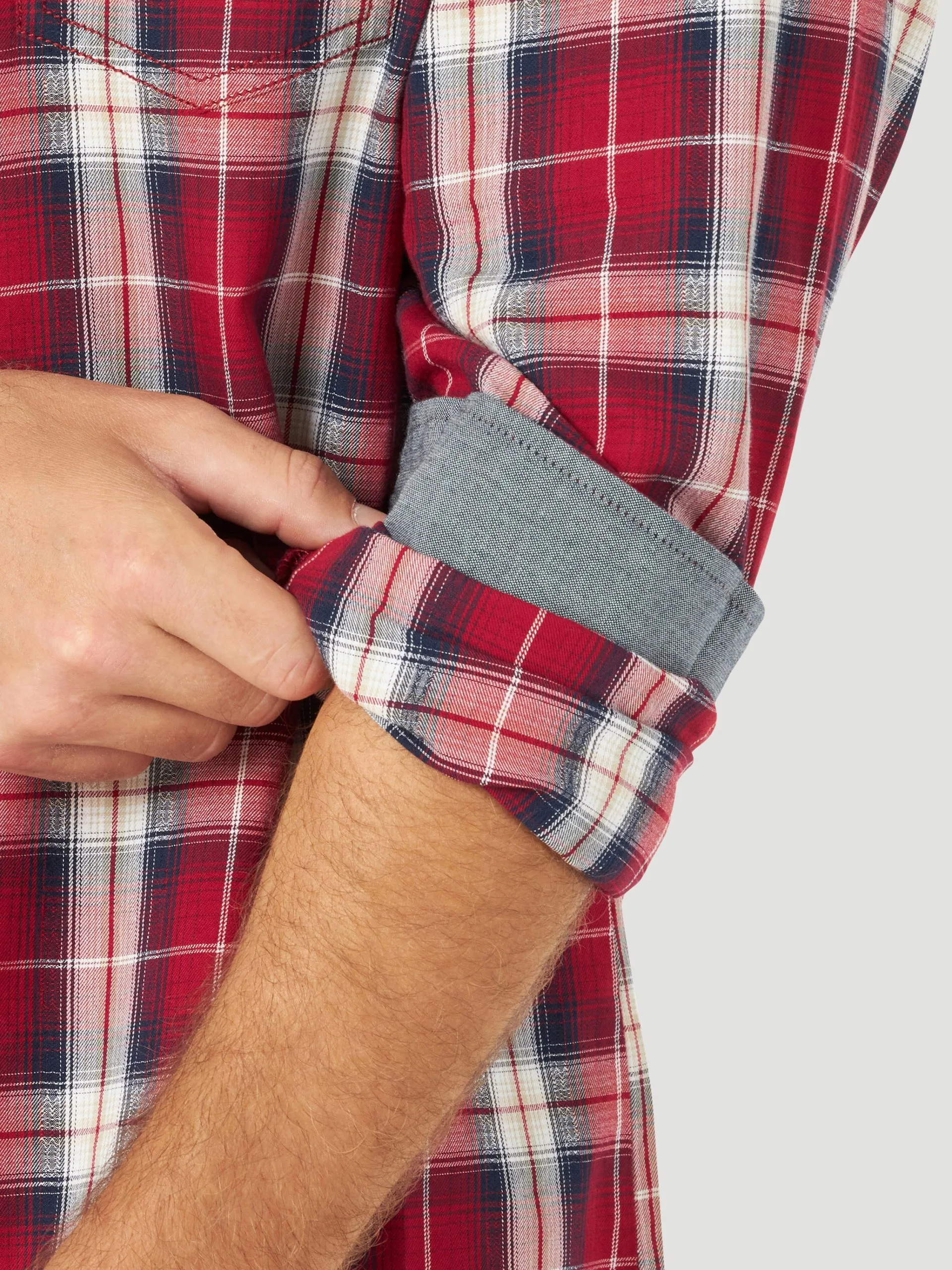 Red and White Plaid Long Sleeve Snap Front Shirt.