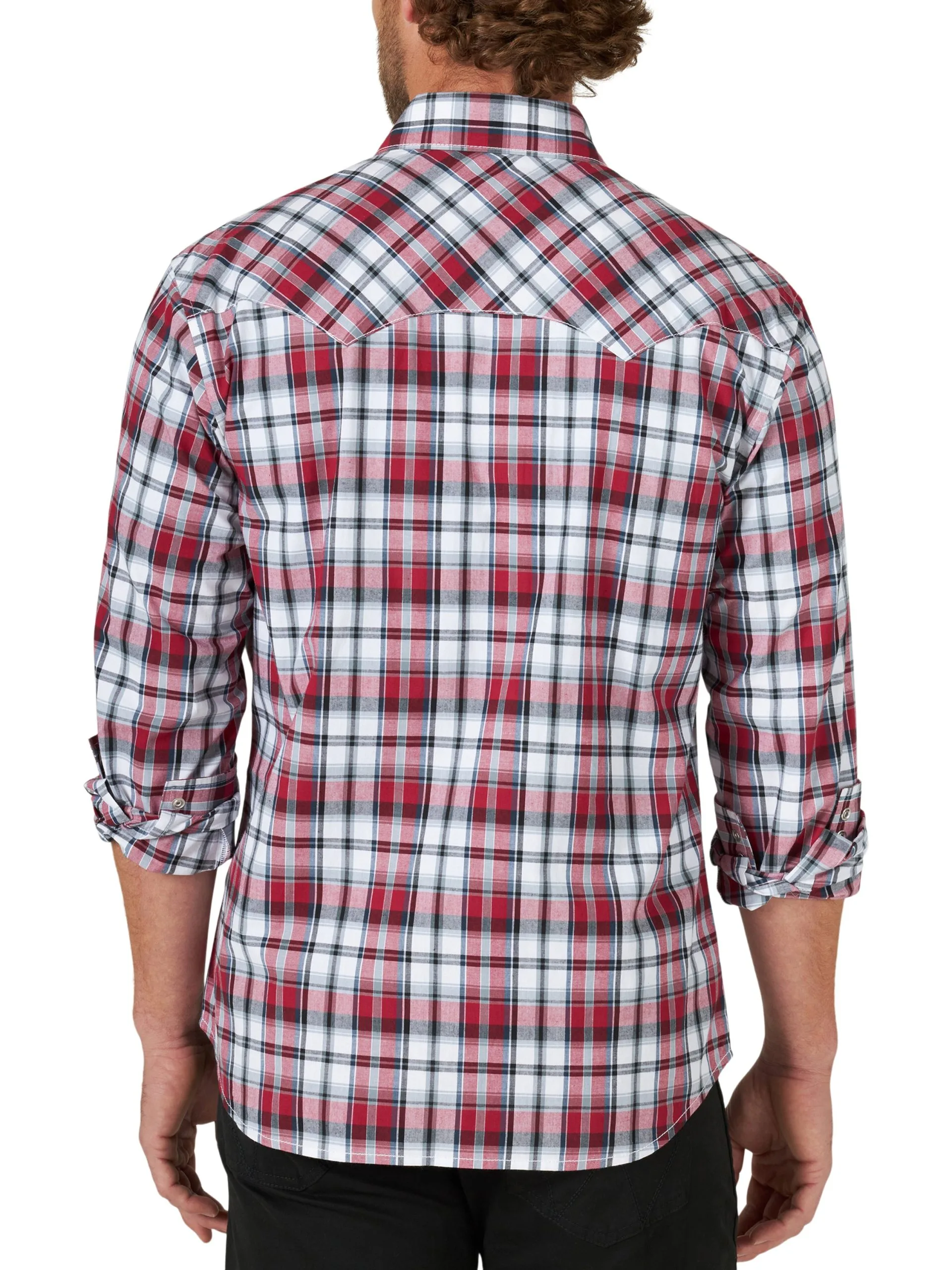 Red Plaid Long Sleeve Retro Snap Front Shirt.