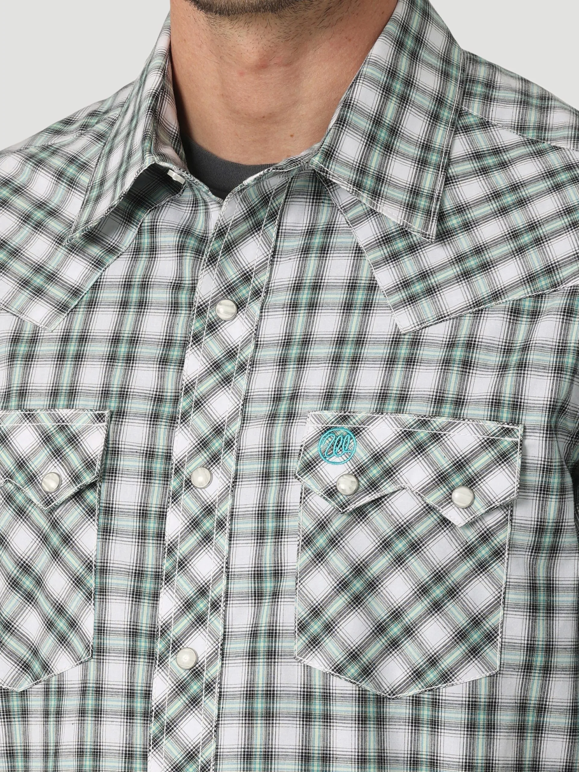 Picnic Green Plaid Short Sleeve Snap Front Shirt.