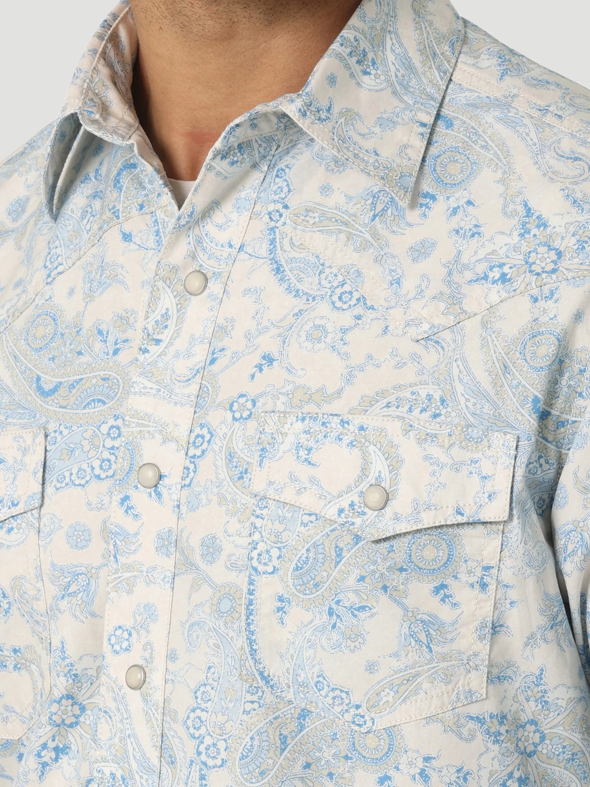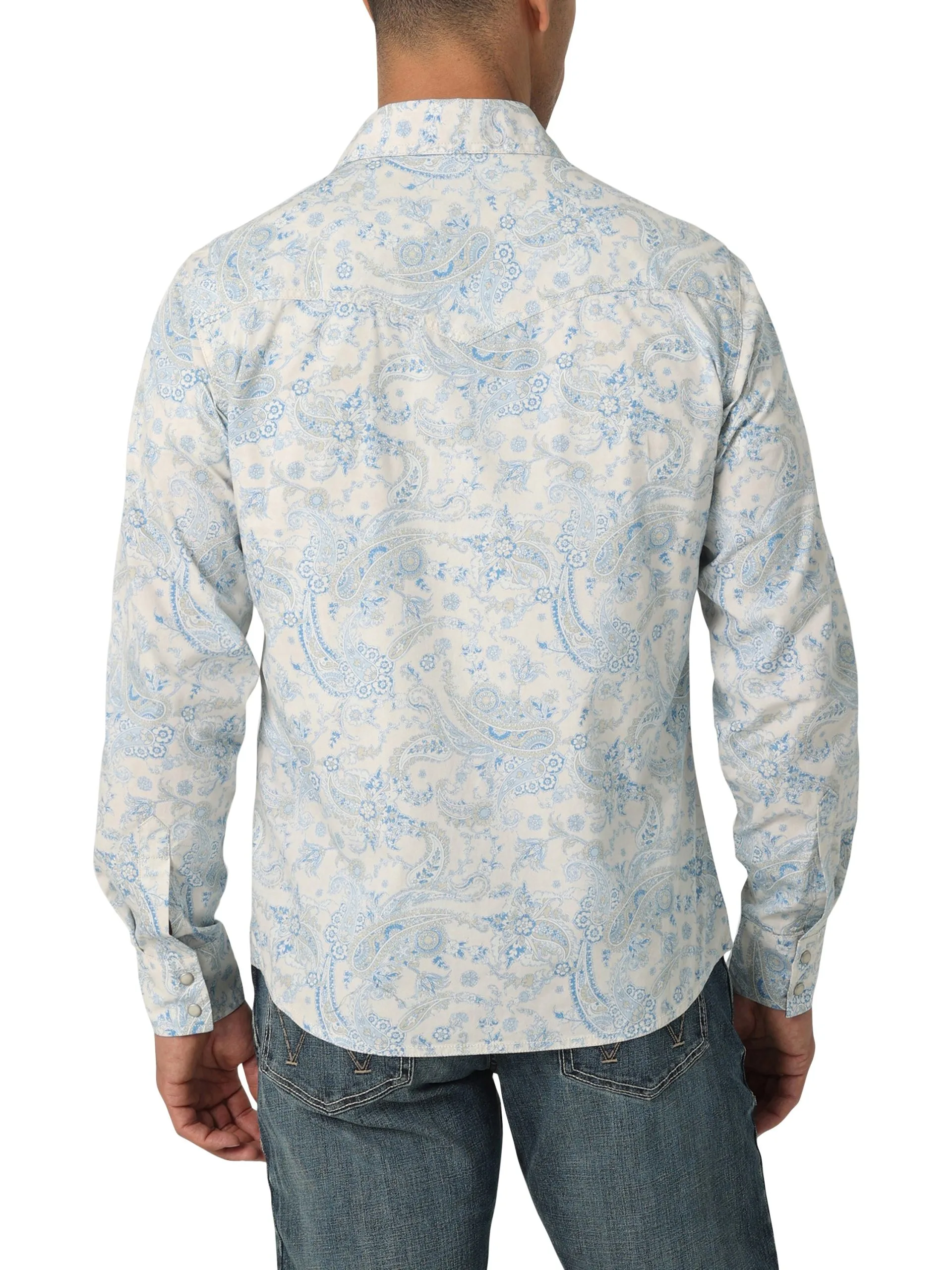 Toile Blue Paisley Long Sleeve Snap Front Shirt.