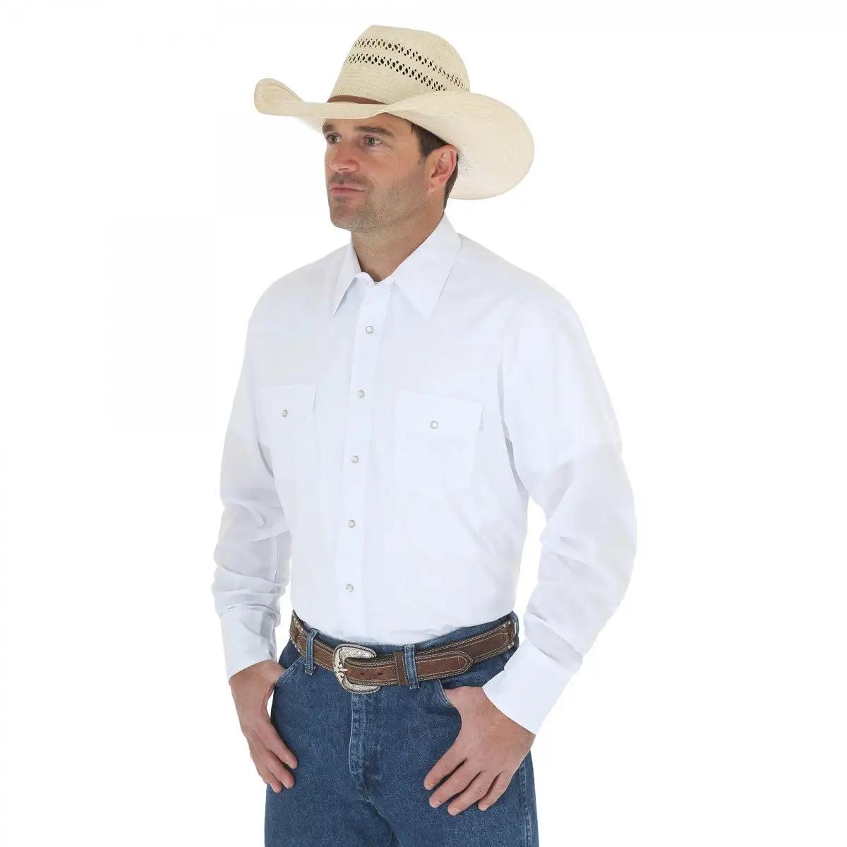 White Sport Western Snap Shirt Long Sleeve.