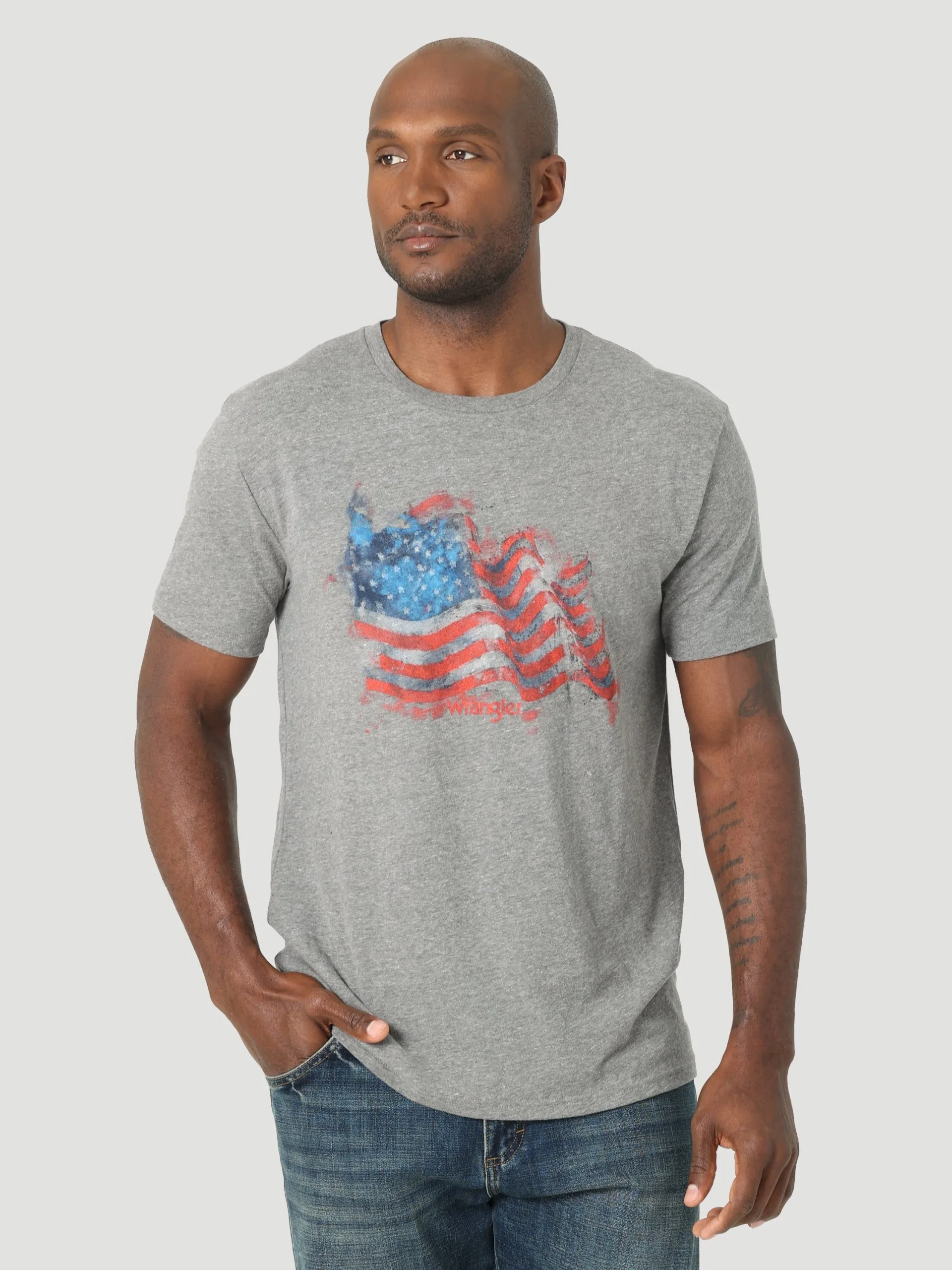 Grey Short Sleeve American Flag Graphic T-Shirt.