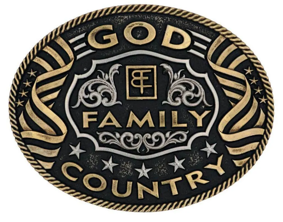 God Family Country Oval Warrior Collection Attitude Buckle.