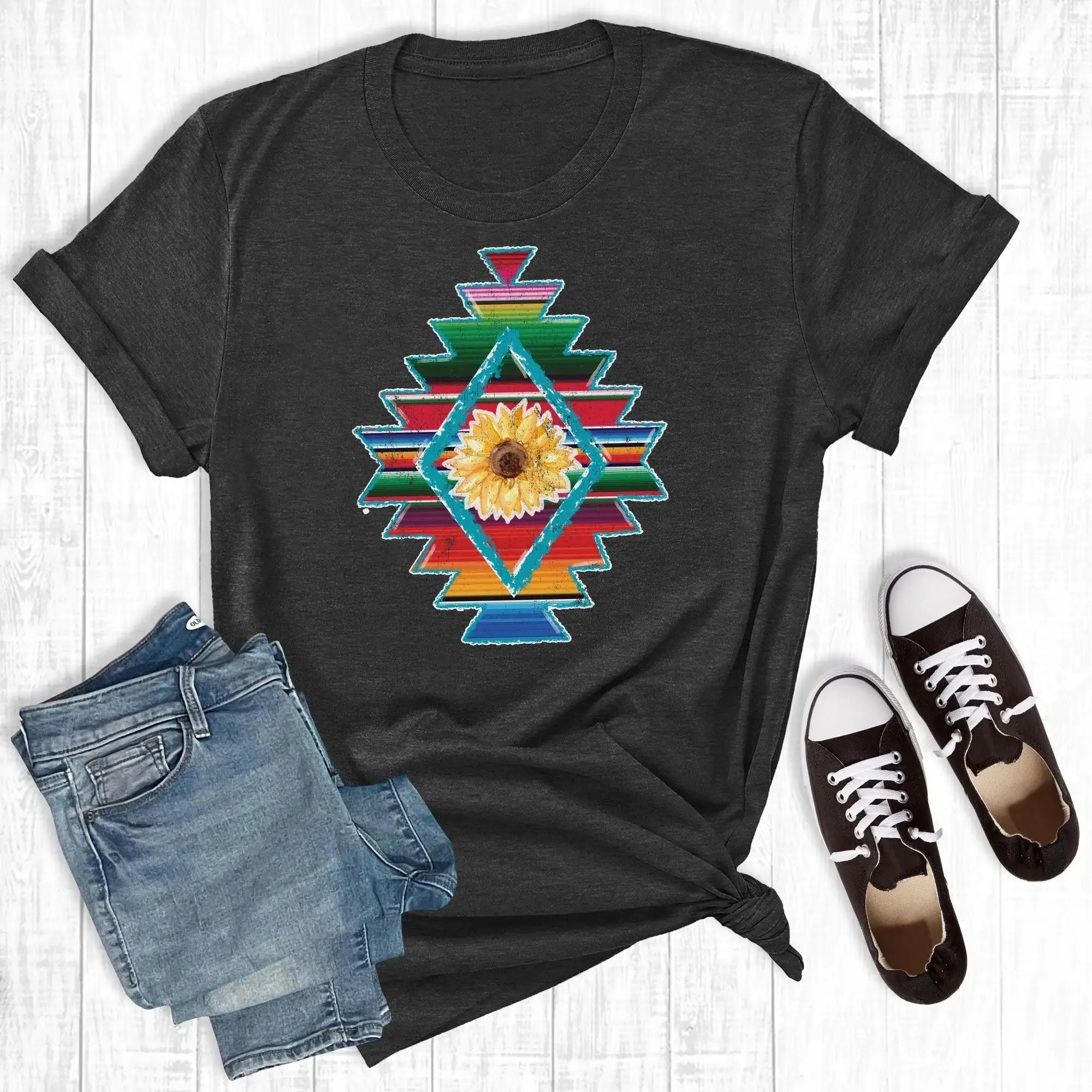 Black Short Sleeve Serape Sunflower T-Shirt.