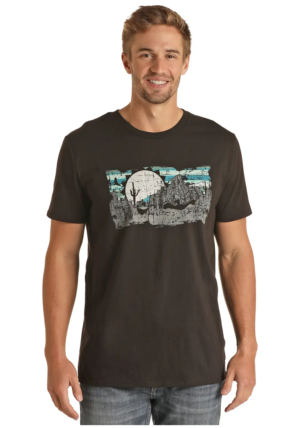 Black Short Sleeve T-Shirt with Desert Moon Graphic.
