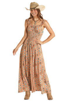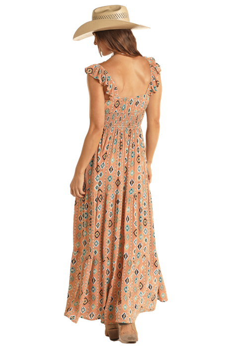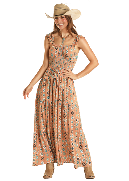 Rust with All Over Aztec Print Maxi Dress.