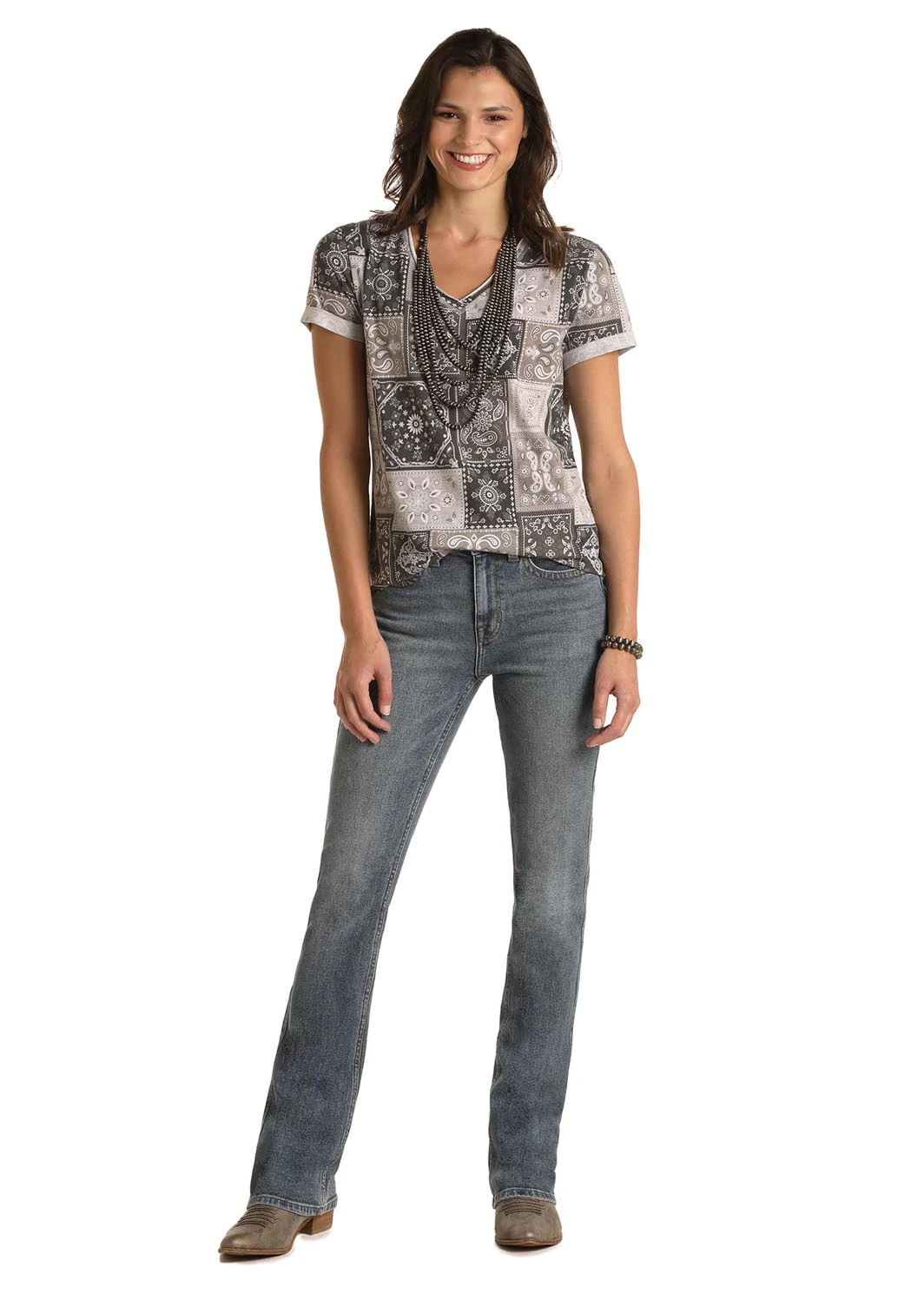 Rock & Roll Cowgirl Women’s Panhandle T-Shirt #L9T3457-C