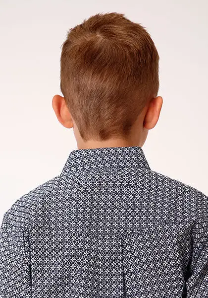 Blue and White Bell Foulard Long Sleeve Button Down Shirt.